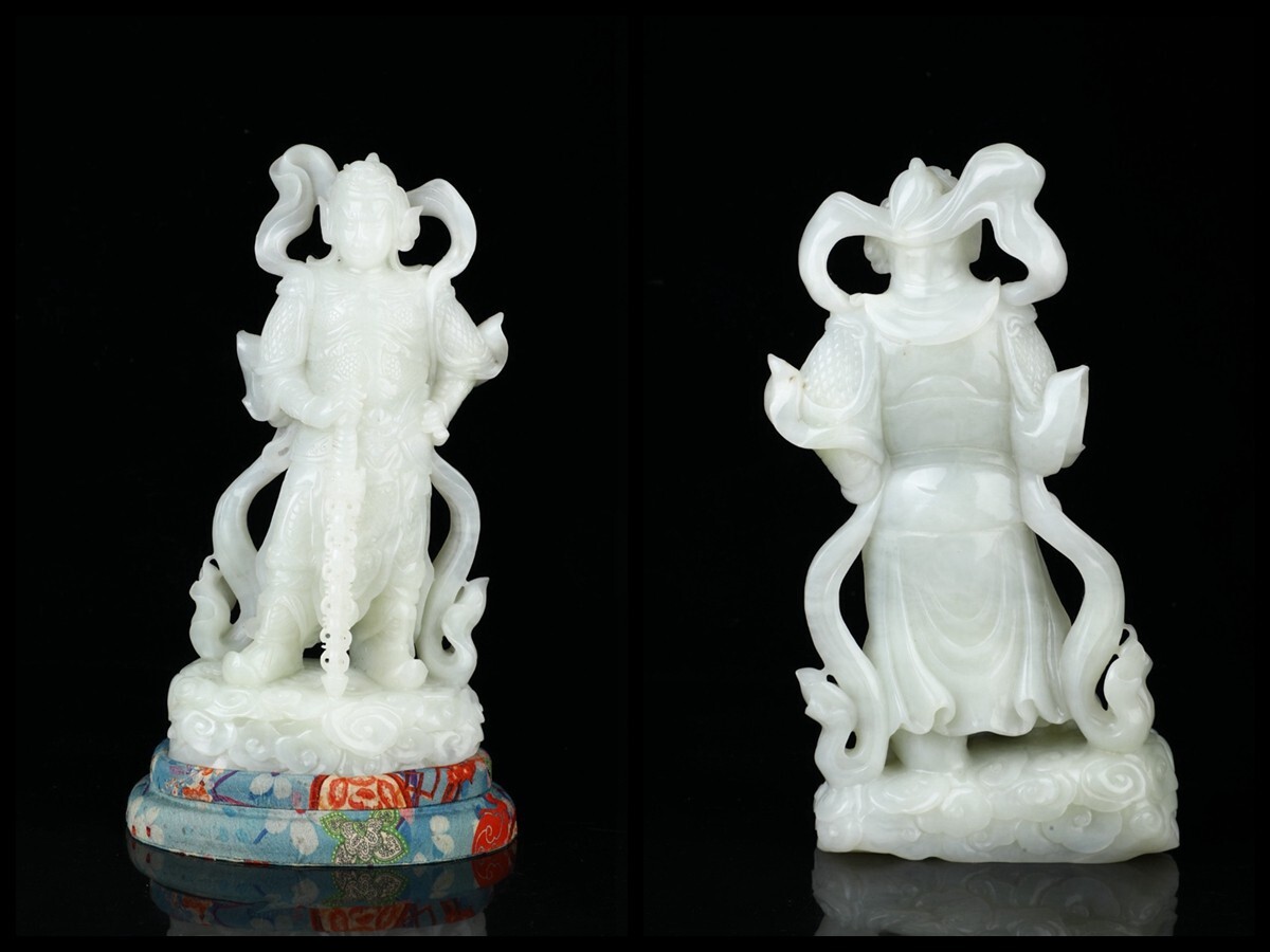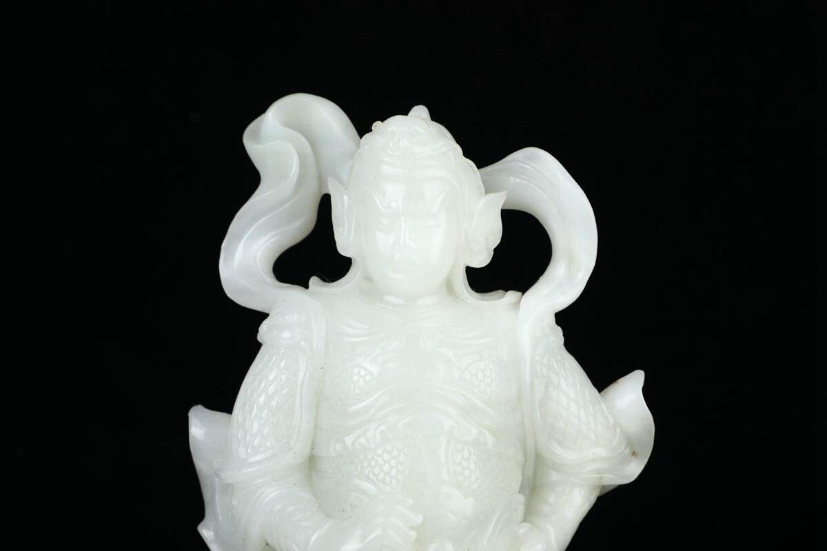 「清代 雍正御製 和田玉 白玉彫り 天王 造像」極細工 擺件 中国古賞物 古美術 旧蔵出