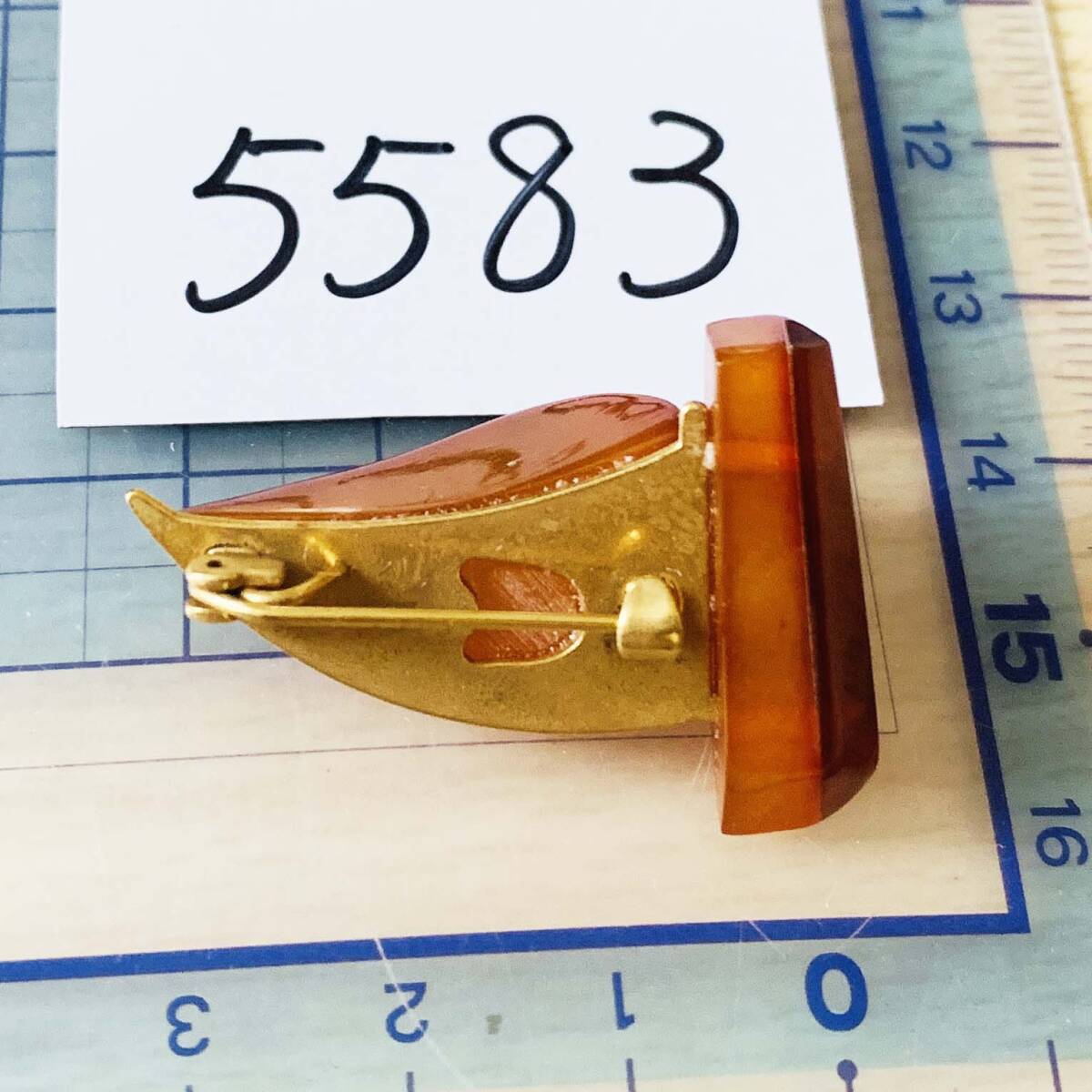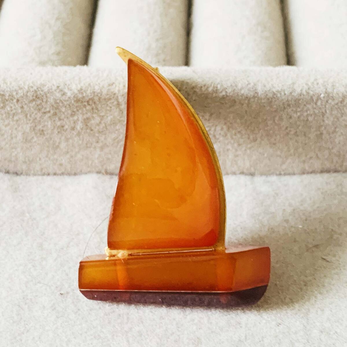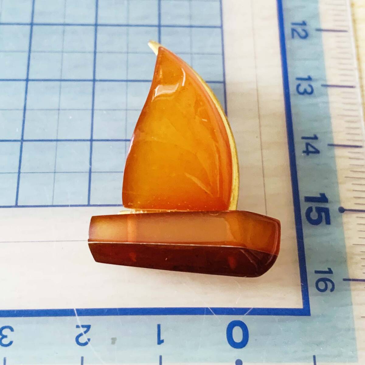 ヴィンテージ 天然琥珀 順風満帆 ゴールド ブローチ No.5583