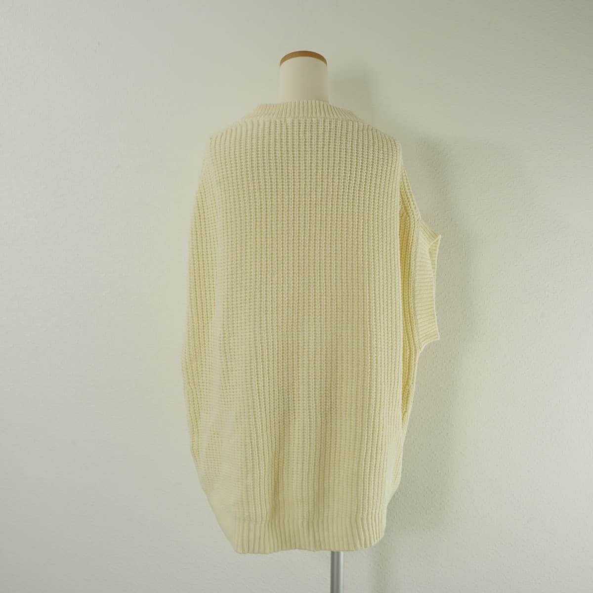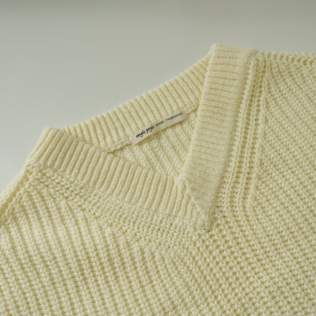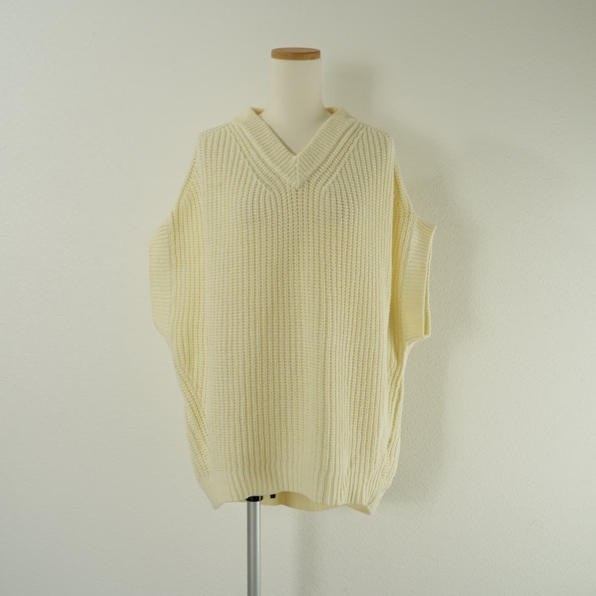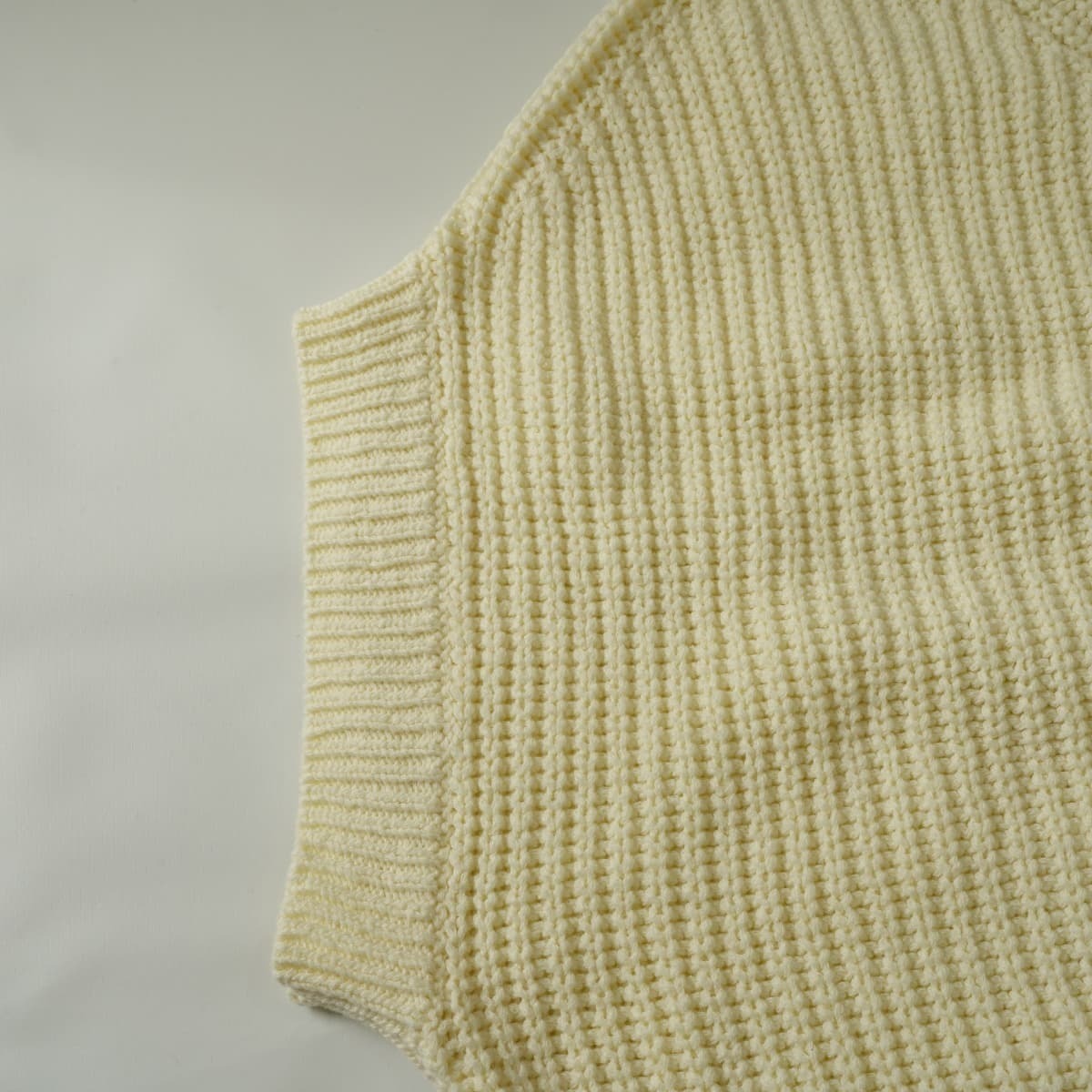 コメント:ゆったりめデザインのプルオーバーニットベストです。お色はオフホワイトです。