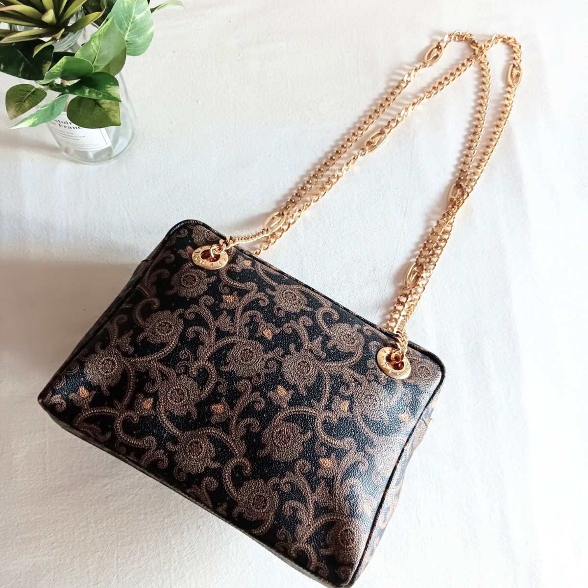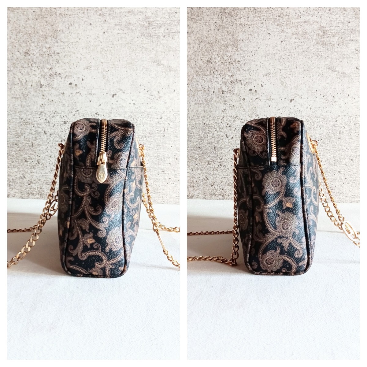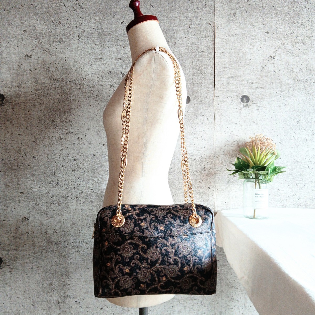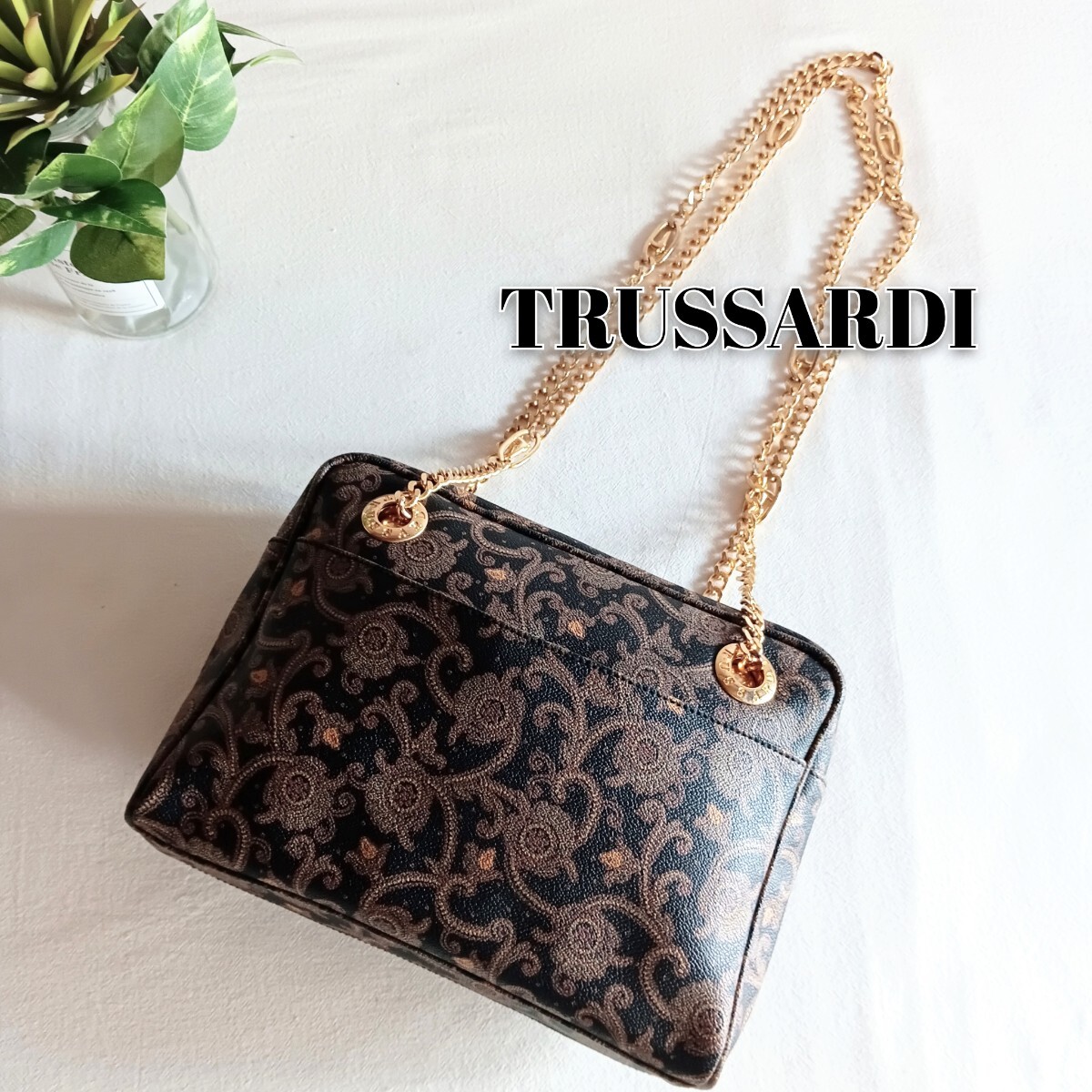【商品】 TRUSSARDI トラサルディ ヴィンテージ ペイズリー ボタニカル 柄 植物 フラワー 花柄 チェーン ショルダーバッグ 鞄 アンティーク クラシック オールド VINTAGE イタリア鞄