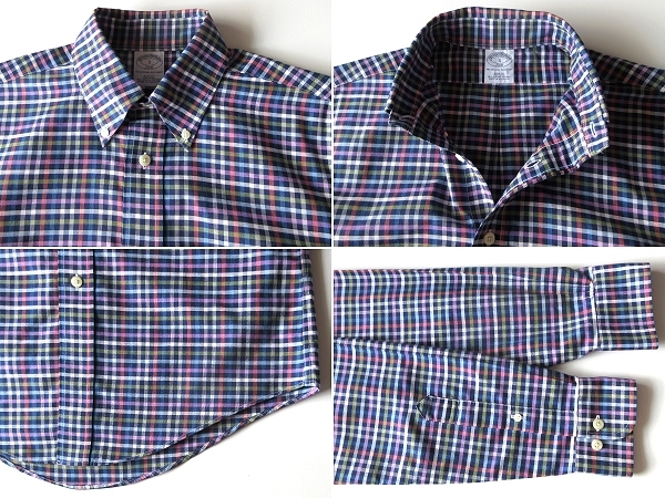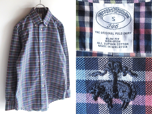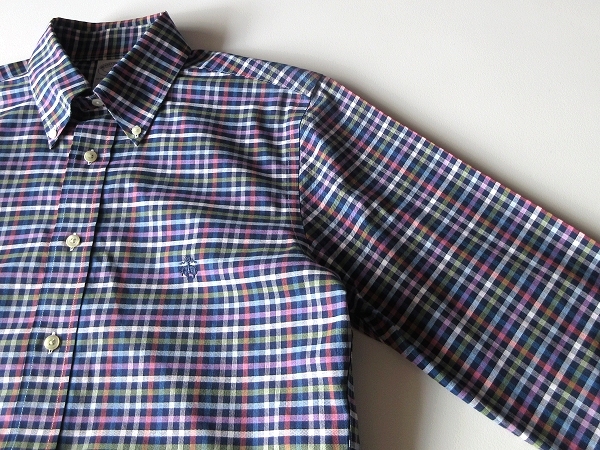 美品 Brooks Brothers 346 ブルックスブラザーズ SLIM FIT スリムフィット 羊ロゴ刺繍 チェックシャツ BDシャツ S マルチ ネコポス対応