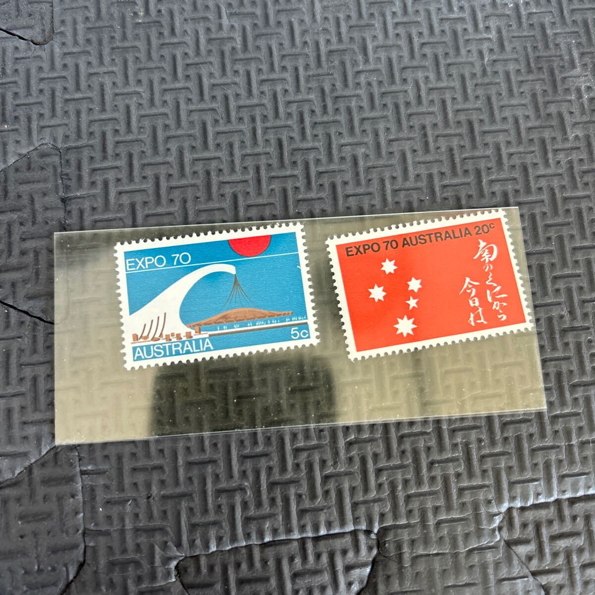 未使用のAUSTRALIA EXPO70と書かれた切手2枚セットです。未使用ですが自宅保管の為細かなところが気になる方はご遠慮ください。