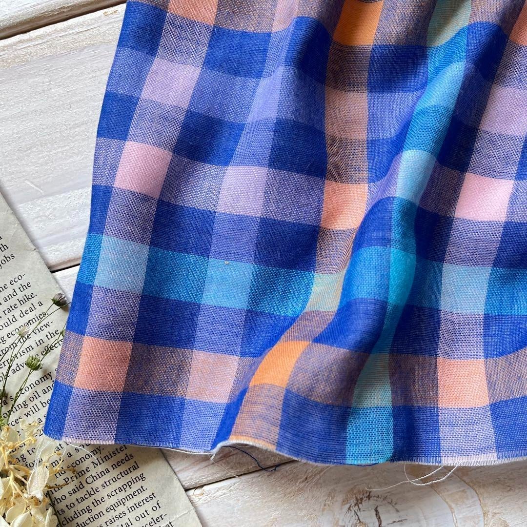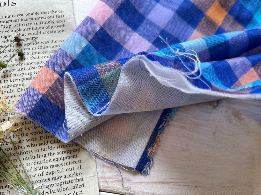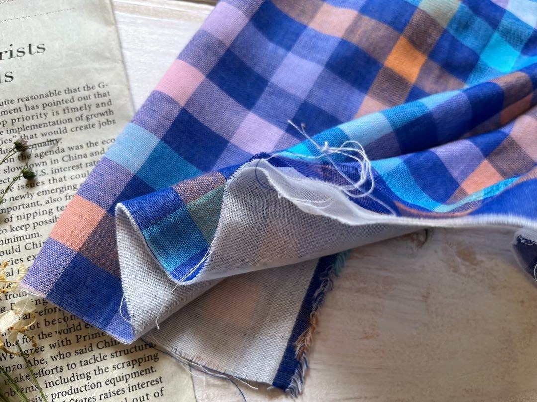 ■0.5m■延長可能■トリプルガーゼチェックリバーシブル ブルー系