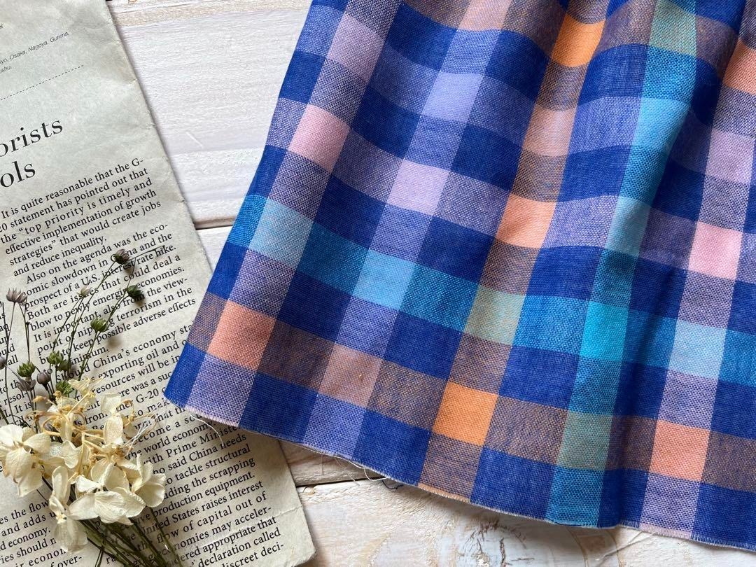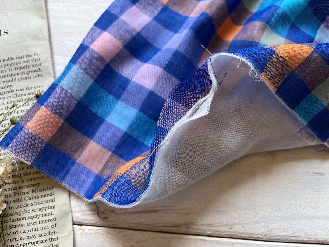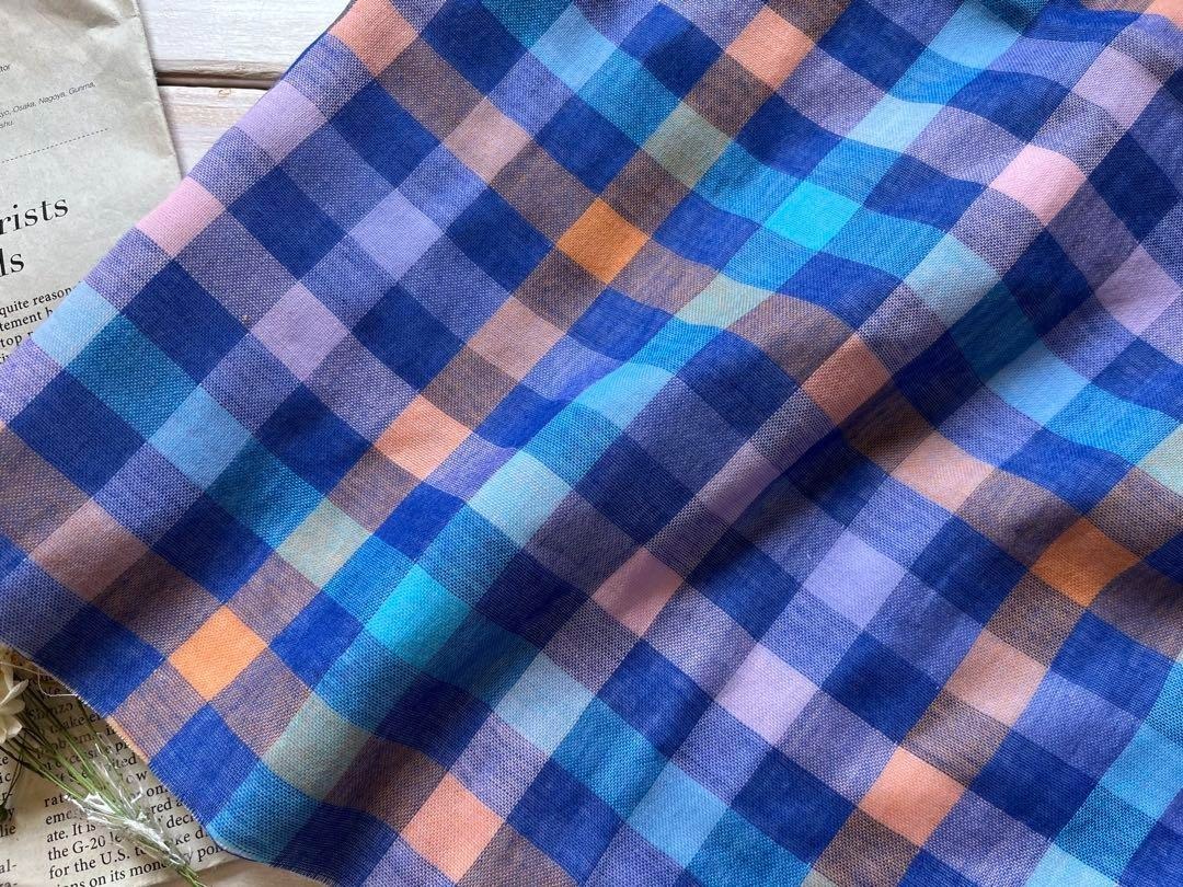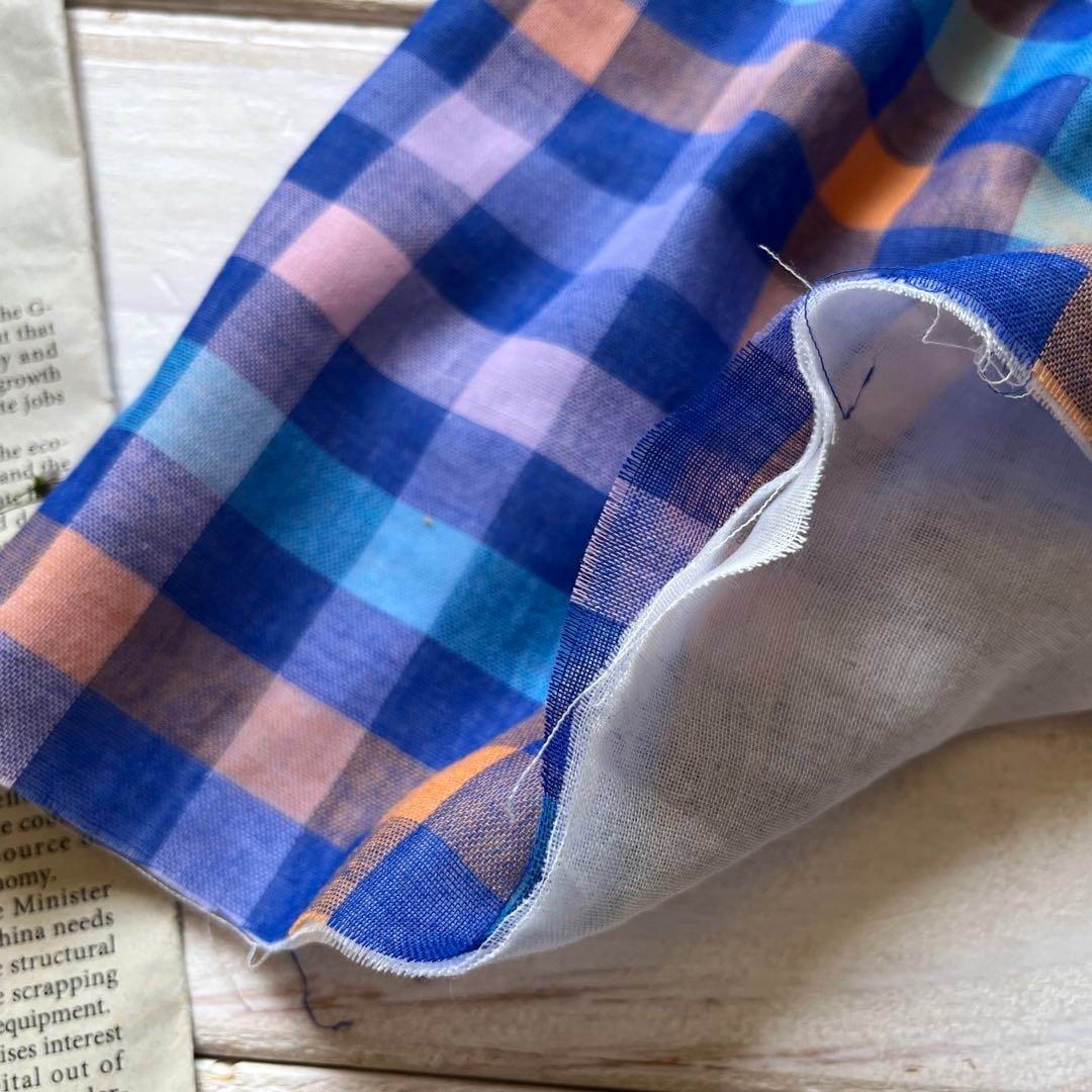 ■0.5m■延長可能■トリプルガーゼチェックリバーシブル ブルー系