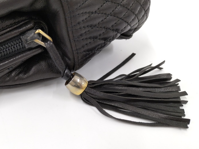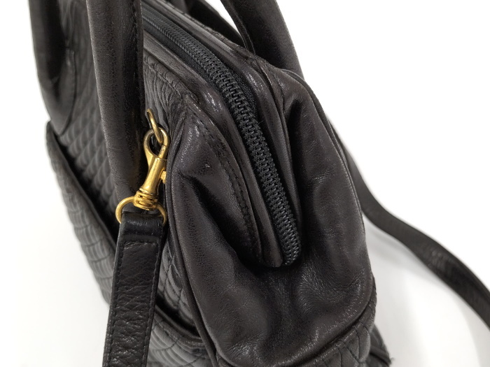 ◆商品情報 | ・カラー:ブラック ・素材/ライン:レザー ・サイズ:最大約 W24×H17×D8(cm) ・ショルダーの長さ:最大約105(cm) ※多少の誤差はご了承下さい。 ・外側:オープンポケット×1 ・内側:ファスナーポケット×1 |