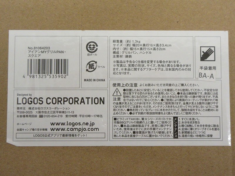 LOGOS(ロゴス) アイアンMYグリルPAN・スクエア No.81064203