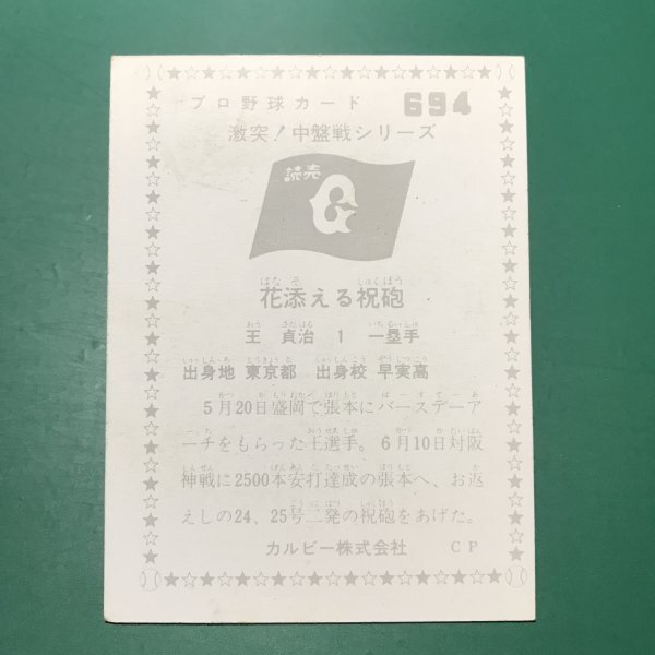 1976年 カルビー プロ野球カード 76年 694番 巨人 王貞治   LDG97