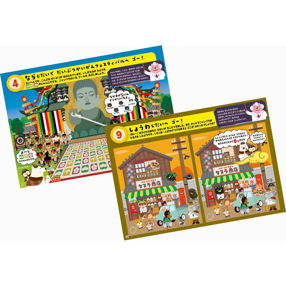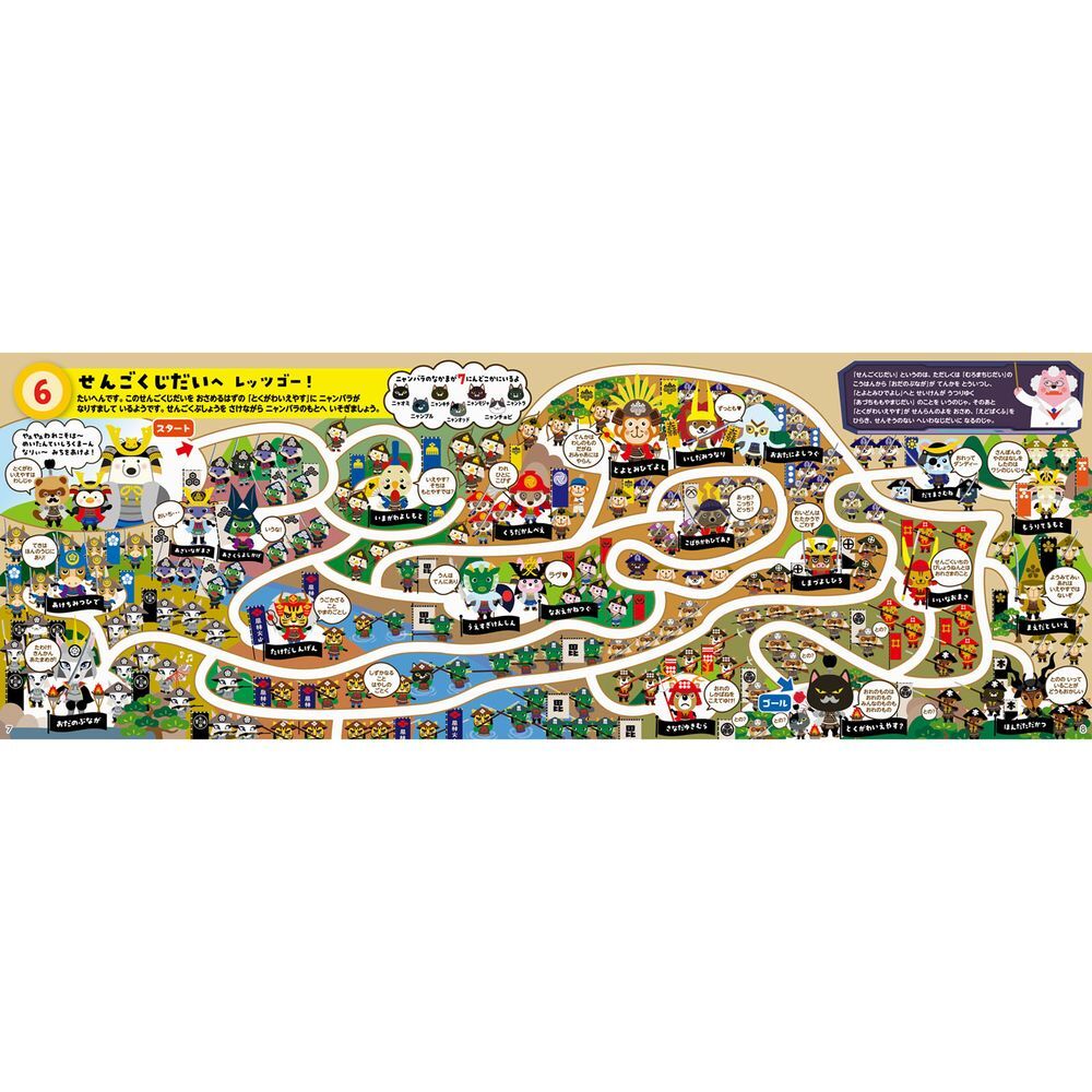 歴史を楽しく学べる知育ブックです。めいろ、パズル、絵探しが楽しめます。はかせの歴史解説付!全16ページ。