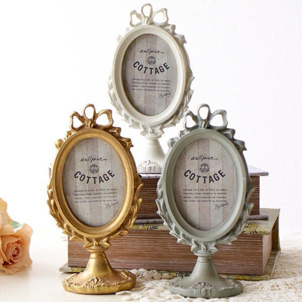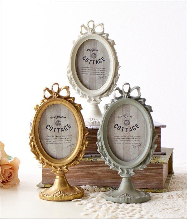 | こちらのページでは【Bカラー】のみの販売です レトロな雰囲気が漂う 樹脂製のオーバルフォトフレーム やや小さめのサイズですが 可愛い形と凝ったデザインで 存在感たっぷりです 商品名 : リボンフォトフレームスタンド オーバル 商品番号 : kan6280 全体のサイズ(cm) : 幅9.5×奥行6×高さ17.5 写真窓のサイズ : 横6×縦8.5 収納部サイズ : 横5.7×縦8.3 材質 : レジン ガラス 他 重量 : 170g 生産国 : 中国 ※ガラスの小さな擦り傷や本体の傾き等はご容赦下さい ※海外製品のため、表から見えないガラスの切り口の欠け等はご容赦ください ※全体にエイジング加工を施したアンティーク調の商品です ※ディスプレイによる色の違いはご了承下さい |