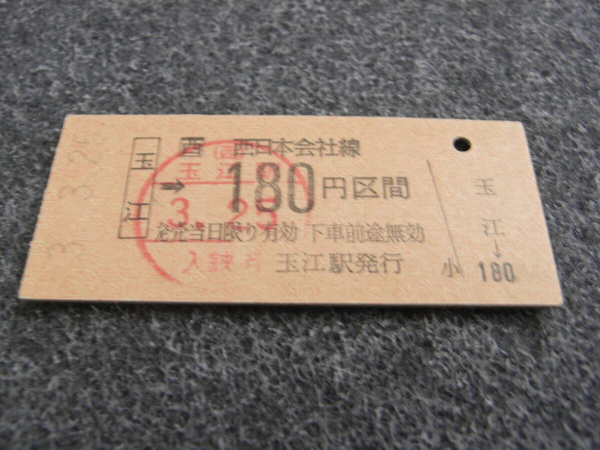 山陰本線 玉江→西日本会社線180円区間 平成3年3月25日 玉江駅発行 JR西日本