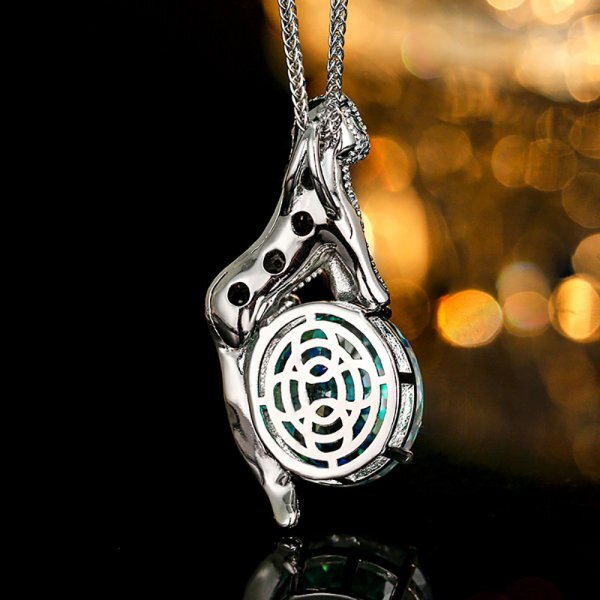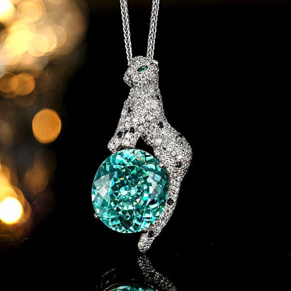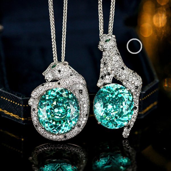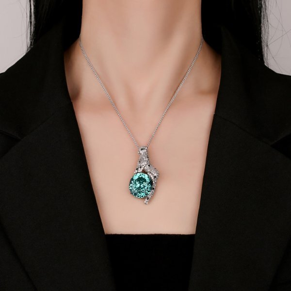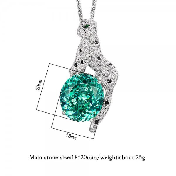 高級レトロ 18*20mmグリーントルマリン ヒョウペンダントネックレス、ラボダイヤモンド、カクテルパーティー、ファインジュエリーギフト