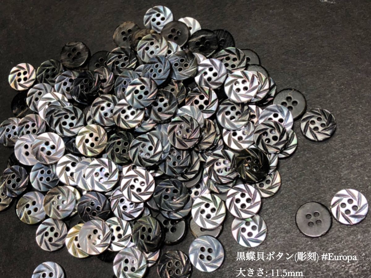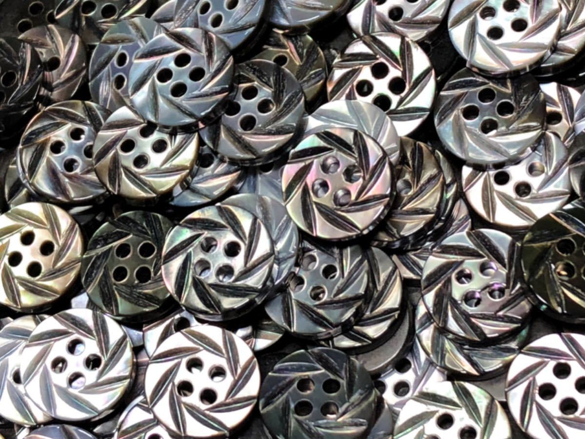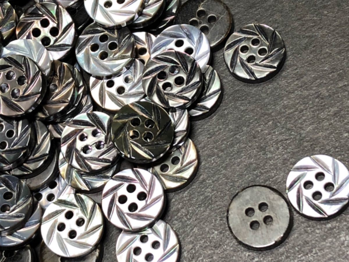 肉厚の黒蝶貝の2穴の彫刻ボタンです。