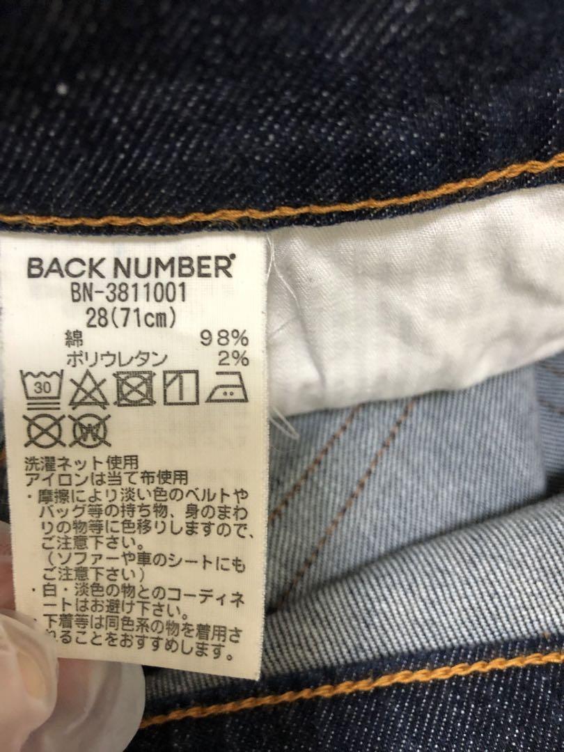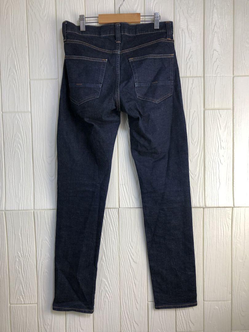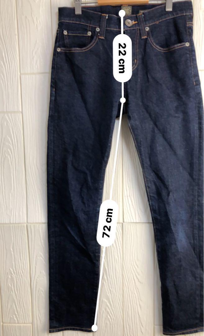 シンプルでスタイリッシュなデニムパンツ、ウエスト72cm、股下72cmのフィット感。