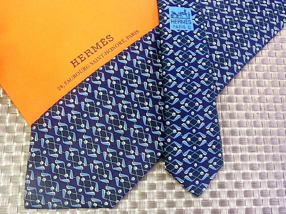 【在庫処分セール】●特売●FK2-1683●エルメス【ゴルフクラブ ボール 柄】ネクタイ●
