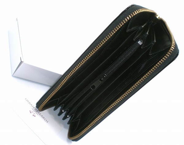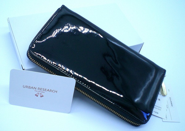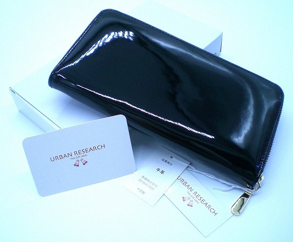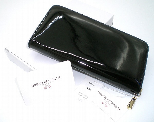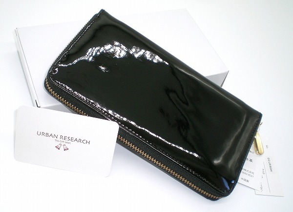 URBAN RESEARCHアーバンリサーチ■ラウンドファスナー牛革ロングウォレット■リアルレザー長財布エナメルブラック