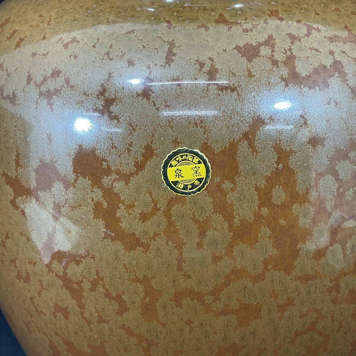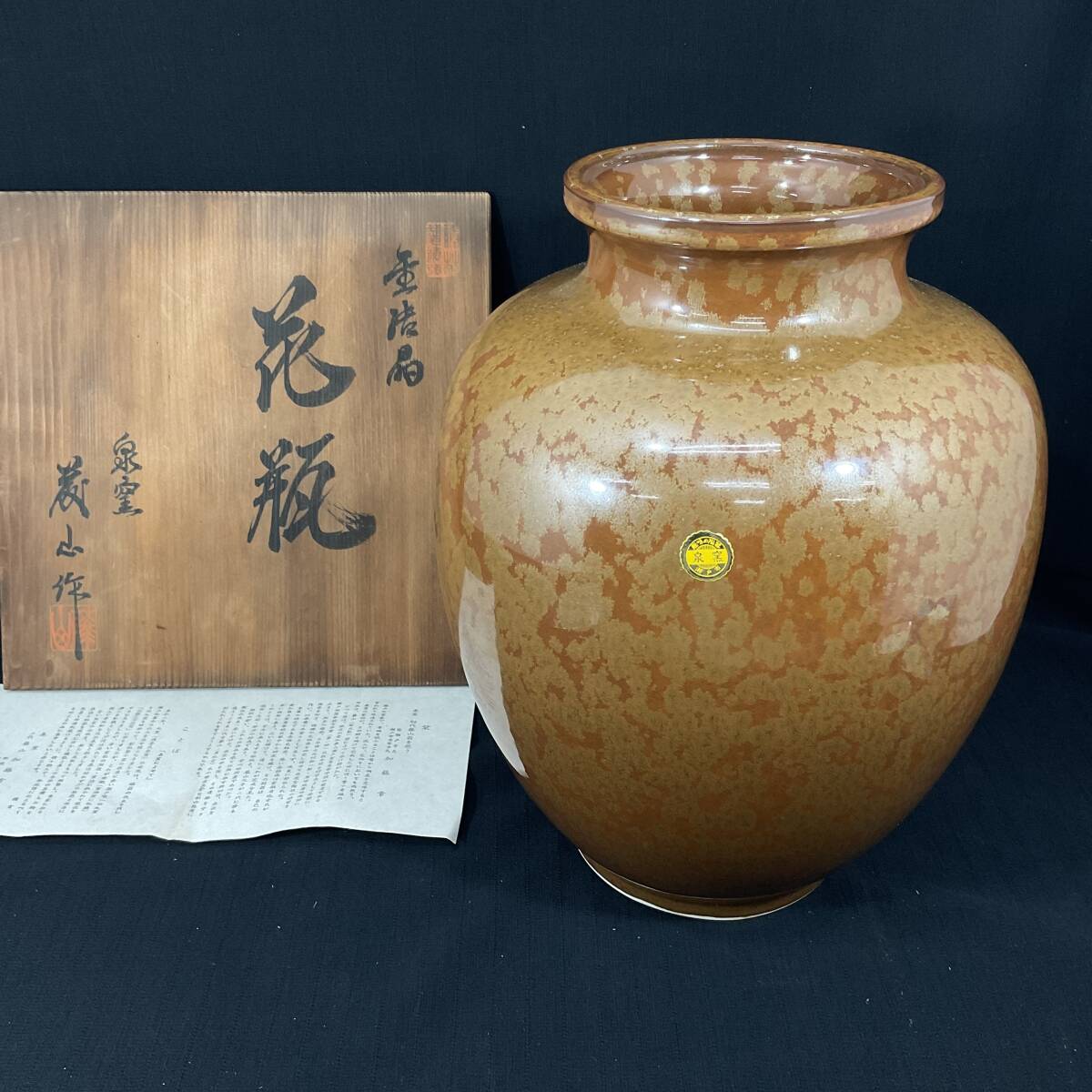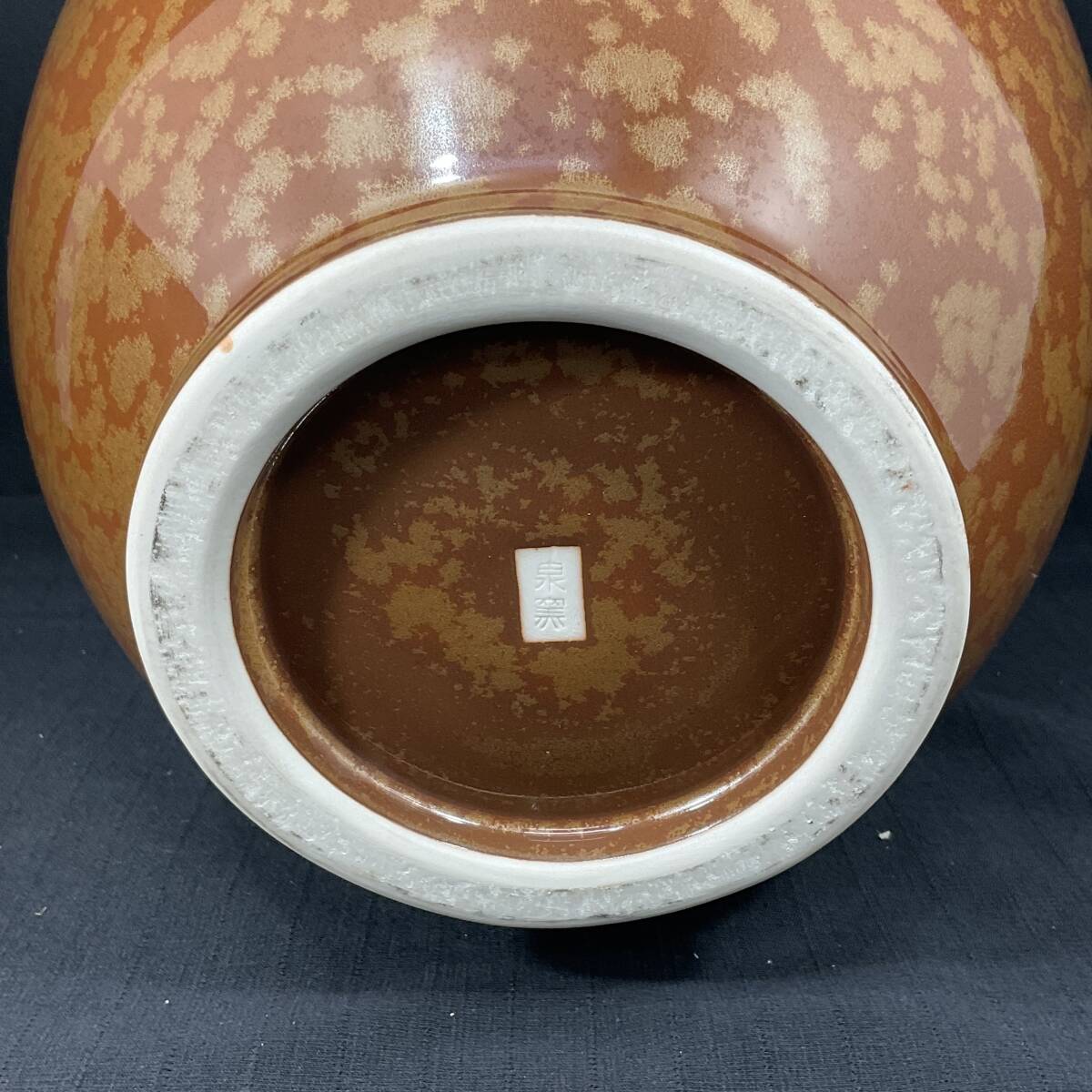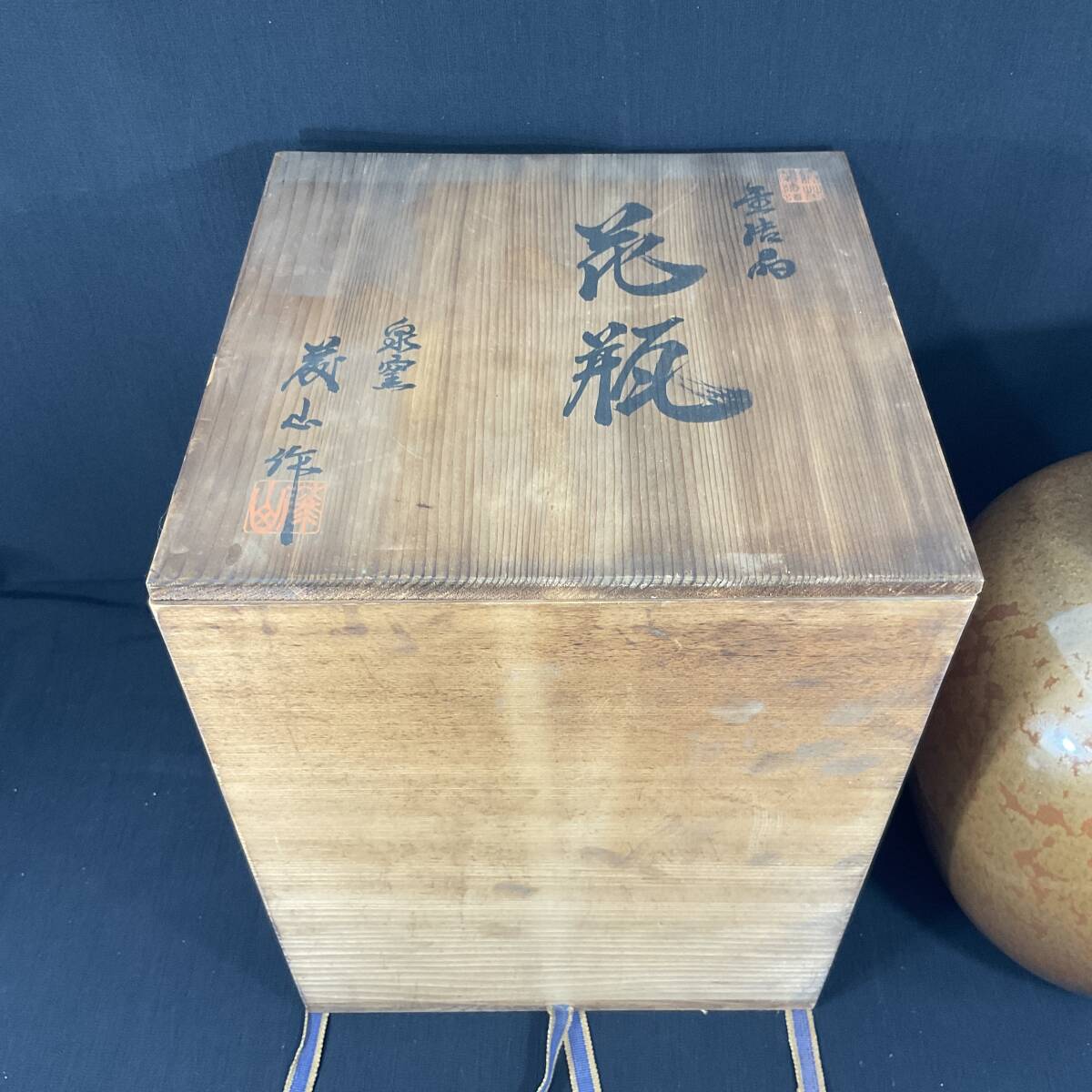 【美品】泉窯 二代 藤山作 加藤有比古 花瓶 約30cm 共箱 茶 陶器 (C69)