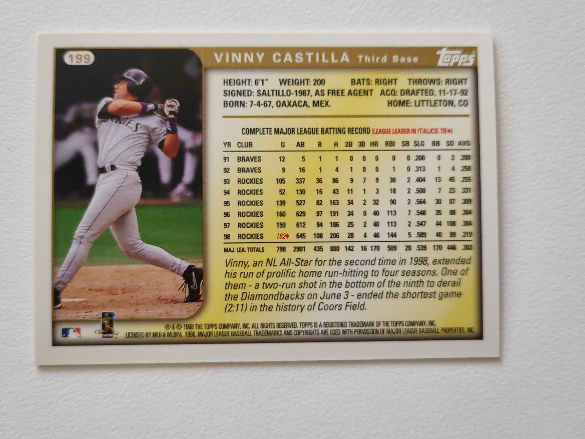 ビニー・カスティーヤ Vinny Castilla コロラド・ロッキーズ 1998 Topps