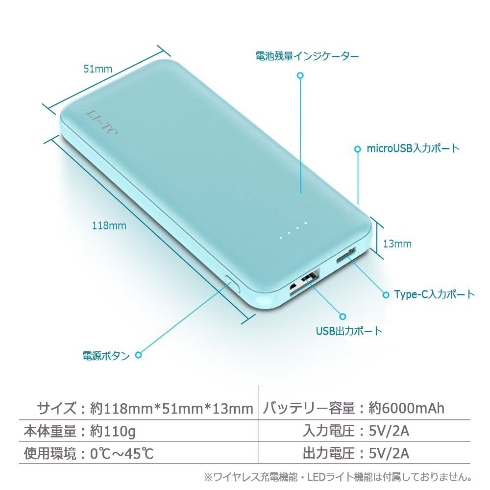 ・6000mAhの超大容量で、電池切れの不安から解消されるモバイル電源。