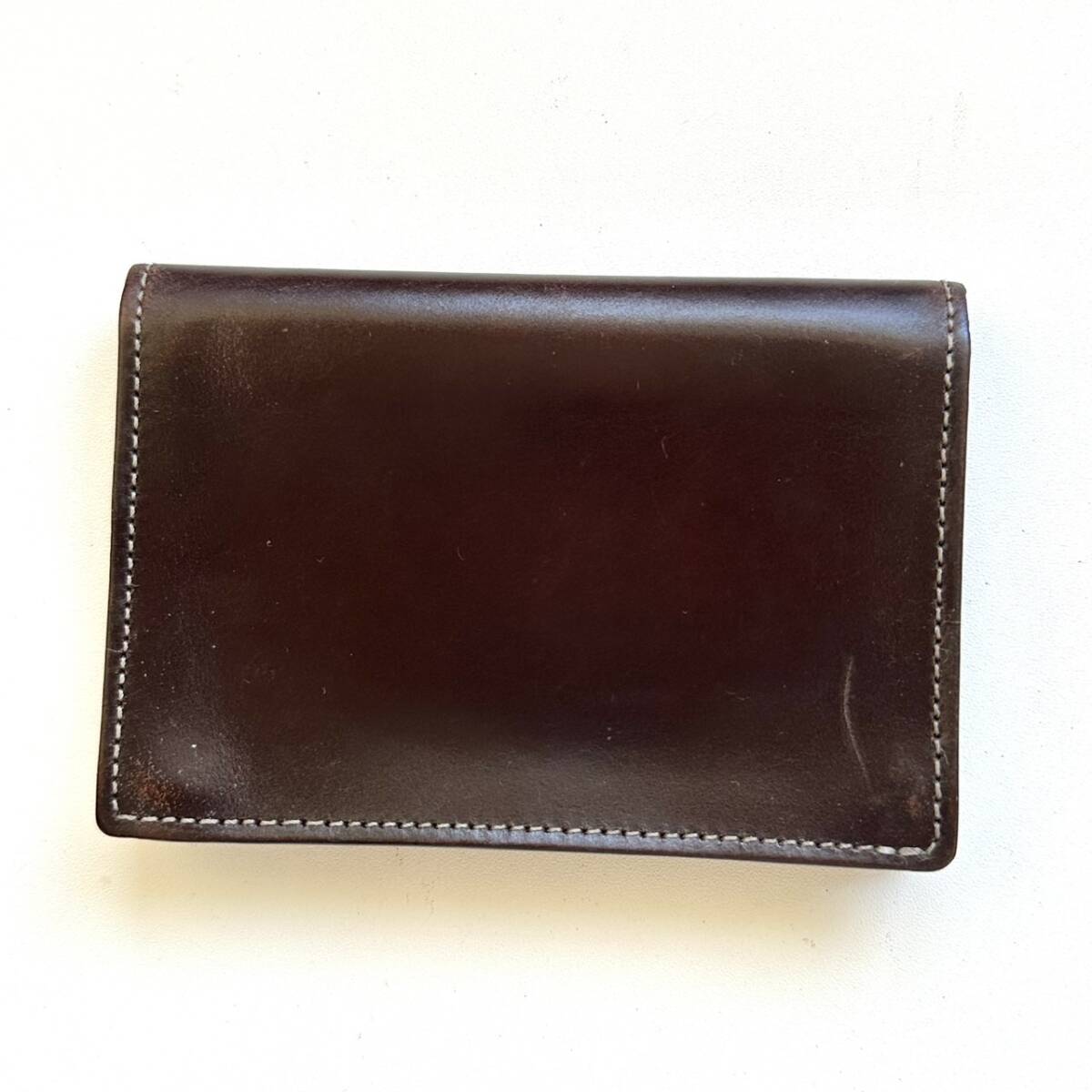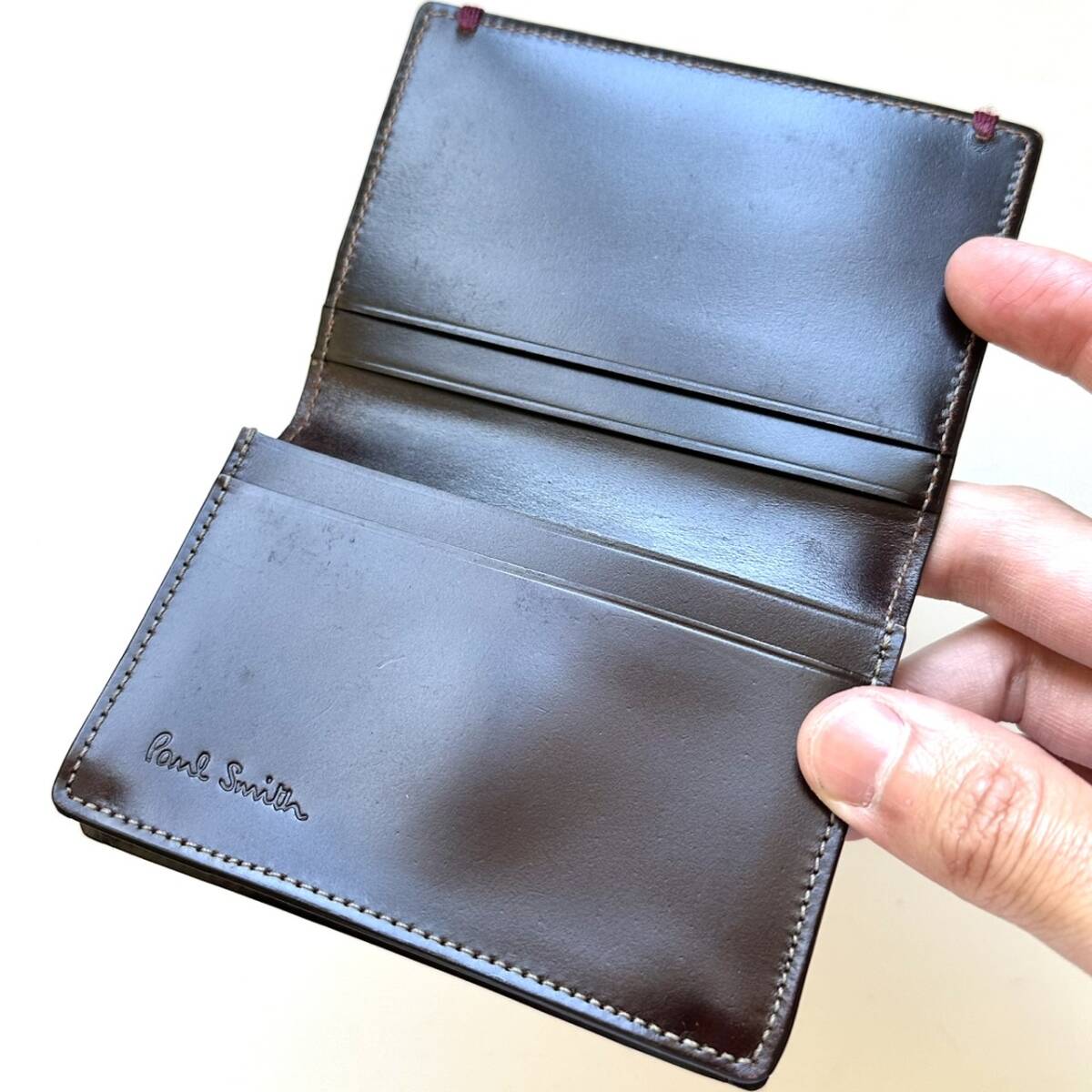 商品説明 | ご覧いただき誠にありがとうございます。 ポールスミス Paul Smith 名刺入れ コードバン になります。 色はダークブラウンです。 外側の折り曲がるところと背面の下部に色スレや傷があります。 形は綺麗です。 光沢感もあります。 【仕様】 縦7.5cm、横11cm、厚さ1.8cm、カード入れ×4 |