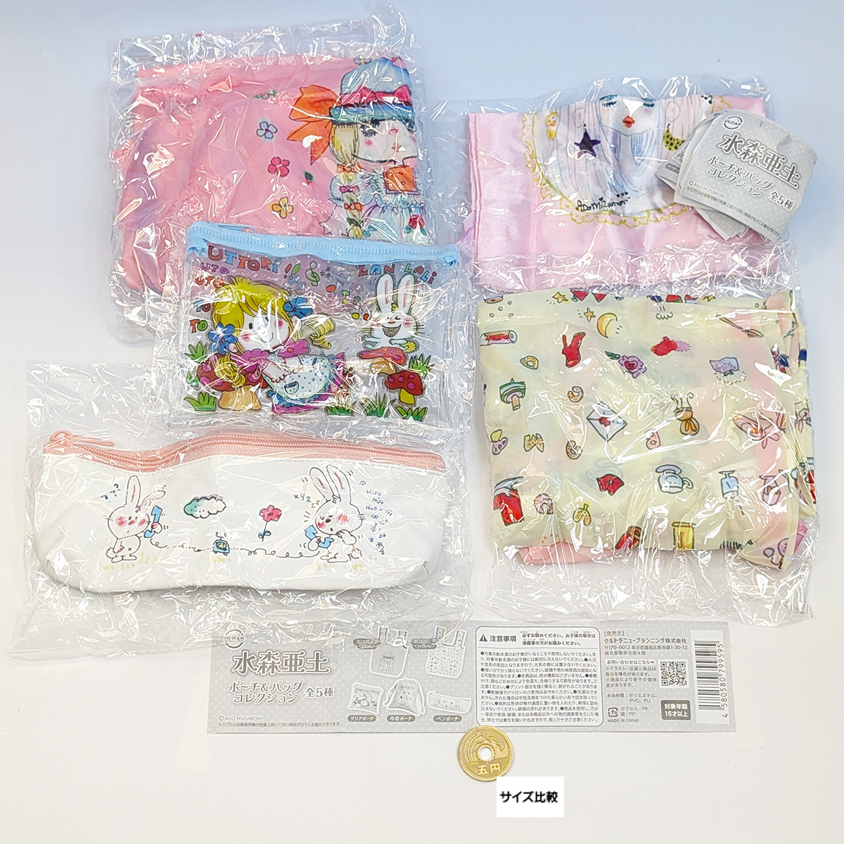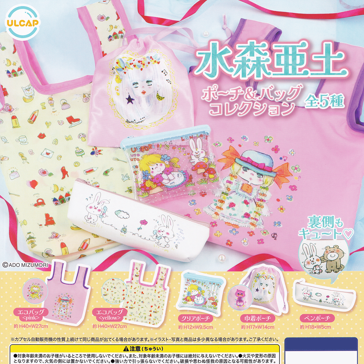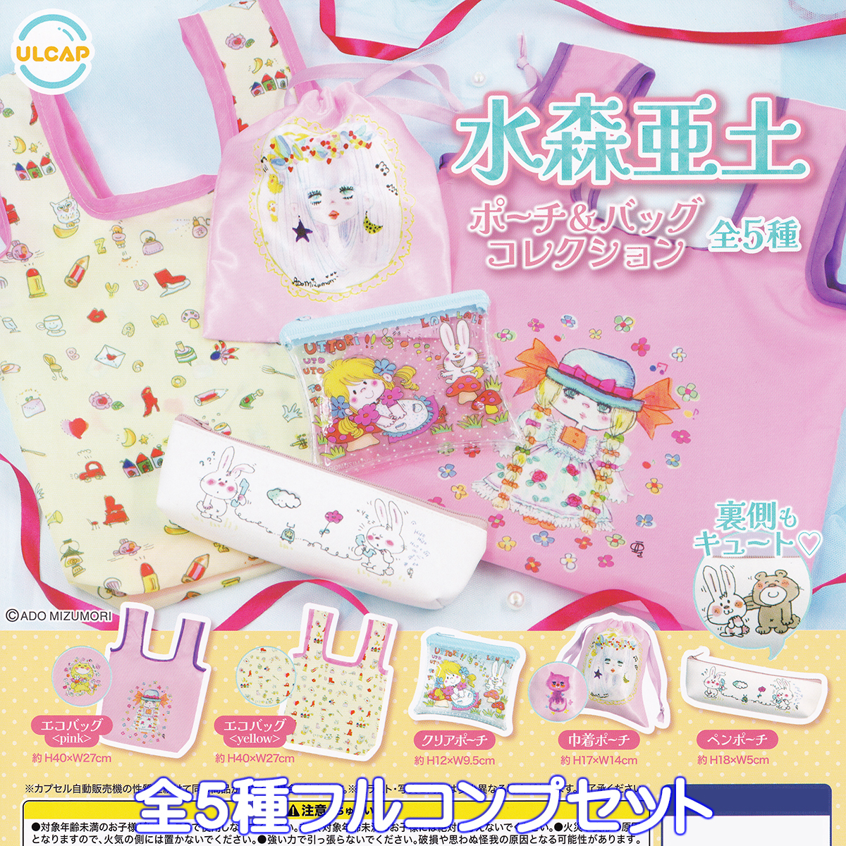 水森亜土 ポーチ&バッグコレクション ウルトラニュープランニング 【全5種フルコンプセット】 ADO MIZUMORI グッズ カプセルトイ 106331