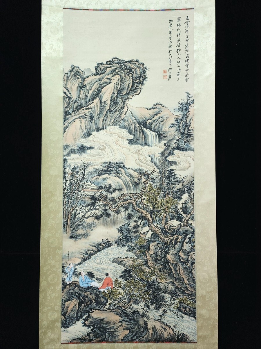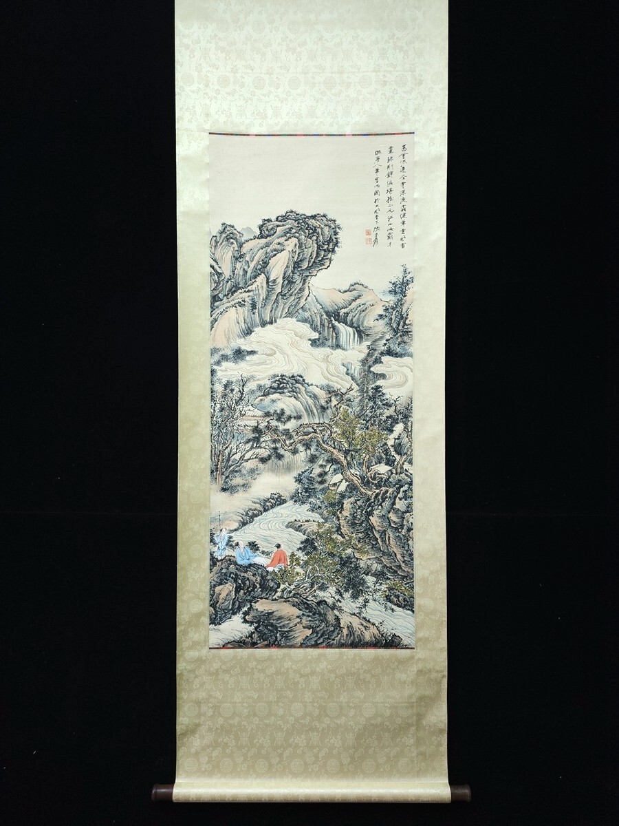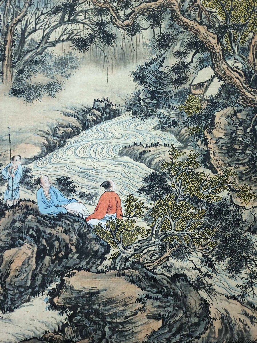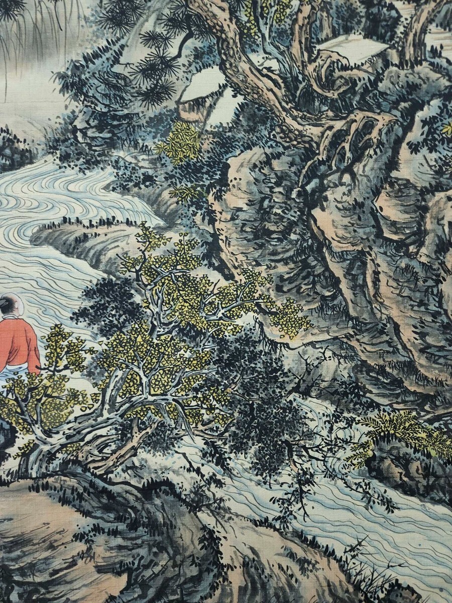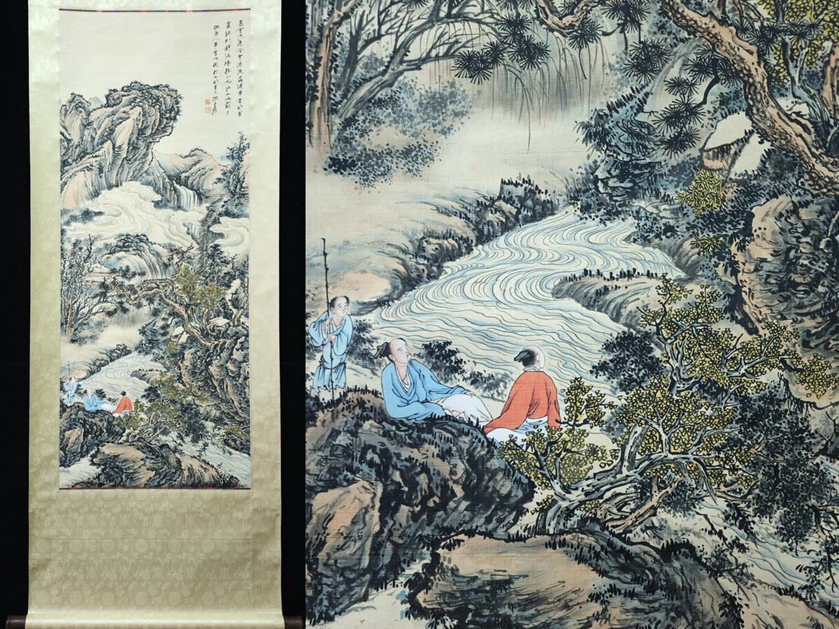 中国書画「張大千 人物山水図」肉筆絹本 掛け軸 墨寶妙品 書画立軸 巻き物 古美術 旧蔵出