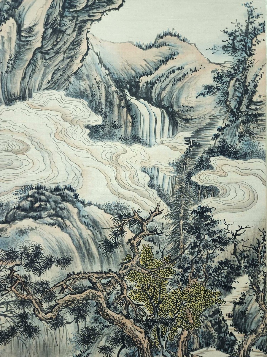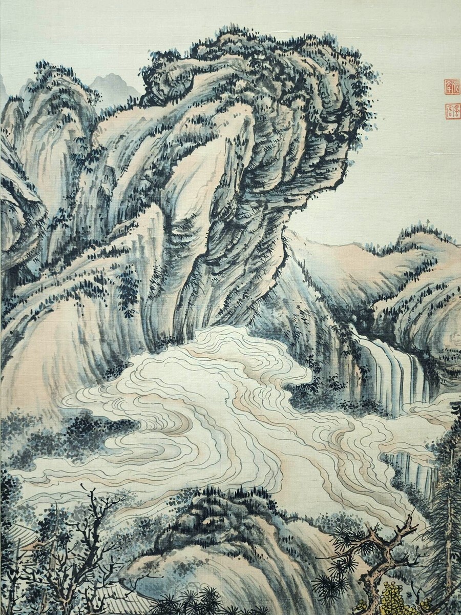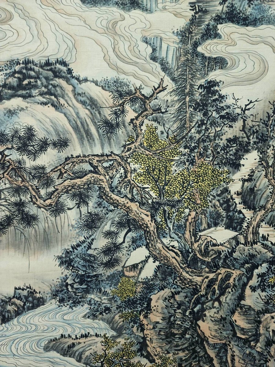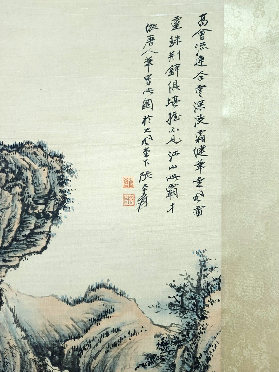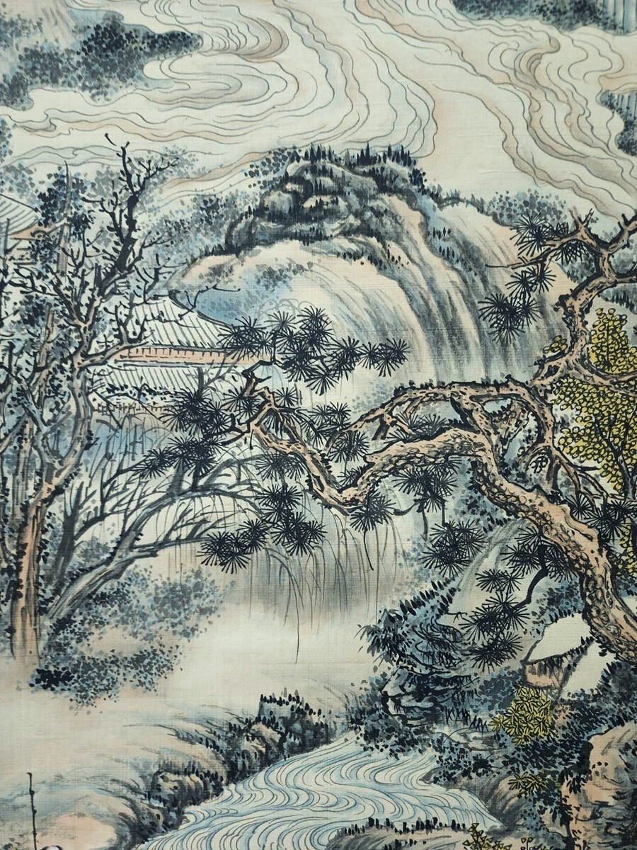 中国書画「張大千 人物山水図」肉筆絹本 掛け軸 墨寶妙品 書画立軸 巻き物 古美術 旧蔵出