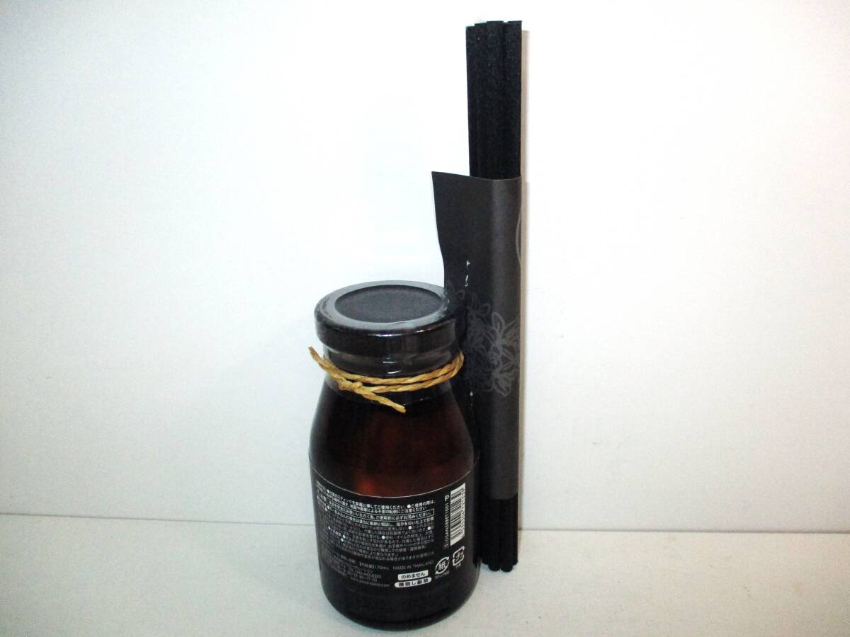 ●黒い太めのラタンスティックから広がるルームフレグランス。