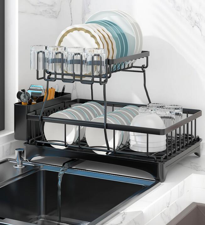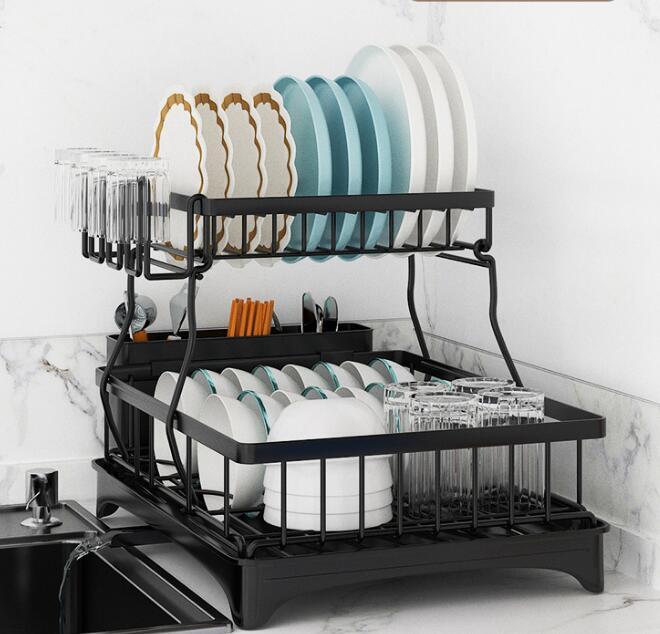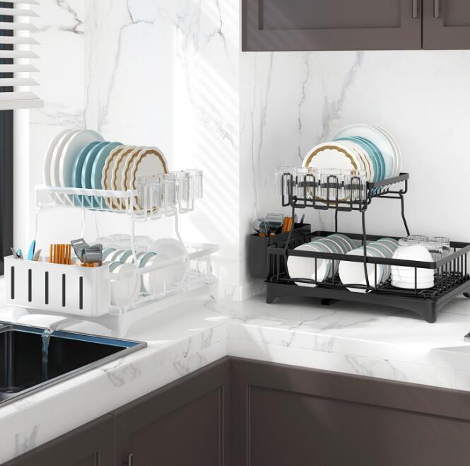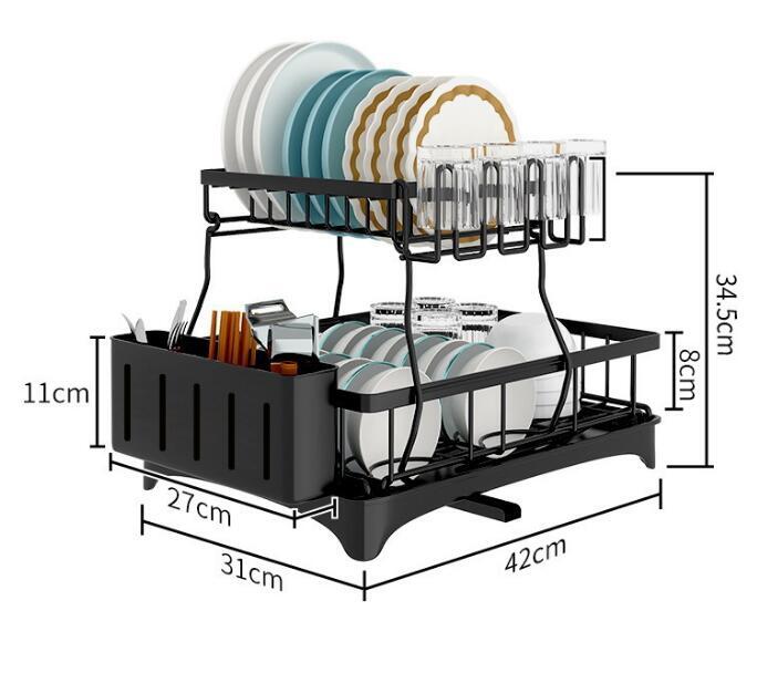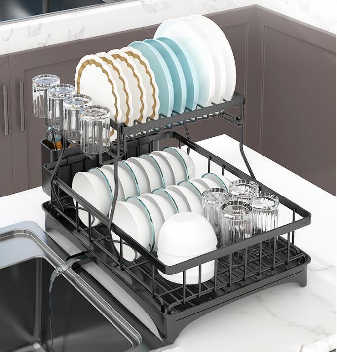 上質水切りラック 2段式大容量食器乾燥ラック 箸立て ナイフホルダー まな板ラック 収納ラック キッチンおしゃれ 防蝕防錆 組み立て簡単