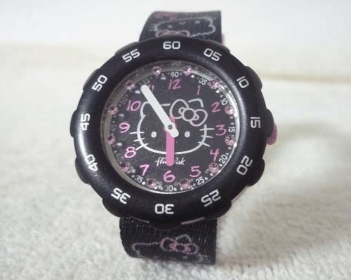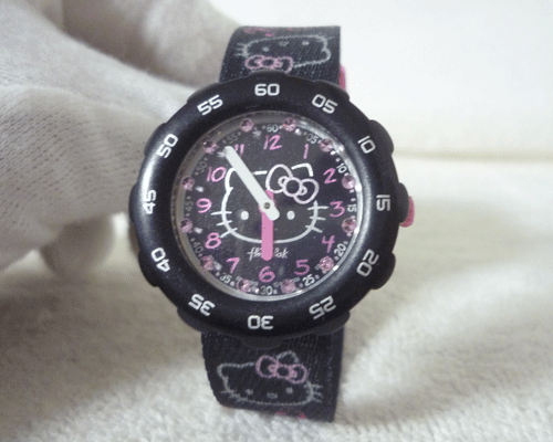 | 稼働品 ☆美品☆ フリックフラック flick flack ハローキティ ブラック文字盤 腕時計 クウォーツ 377/SR626SW | ||