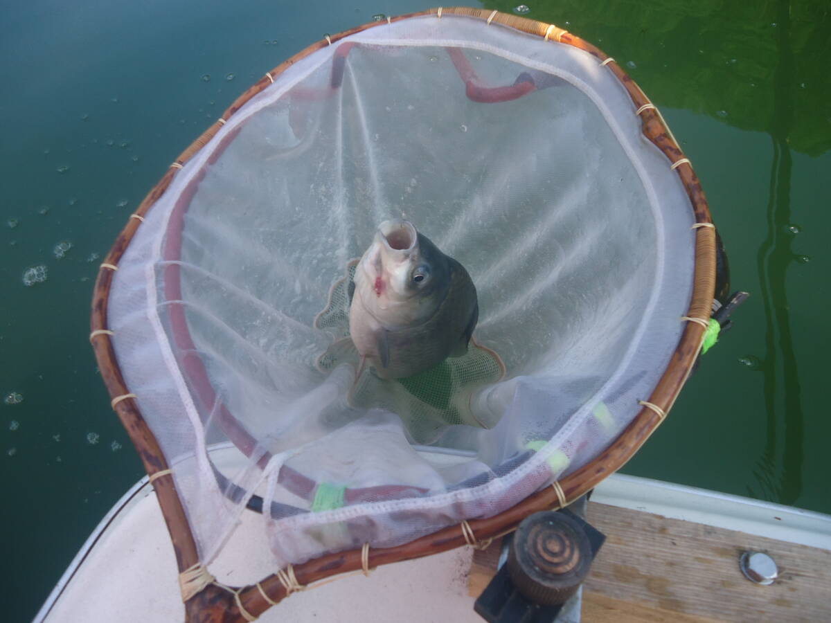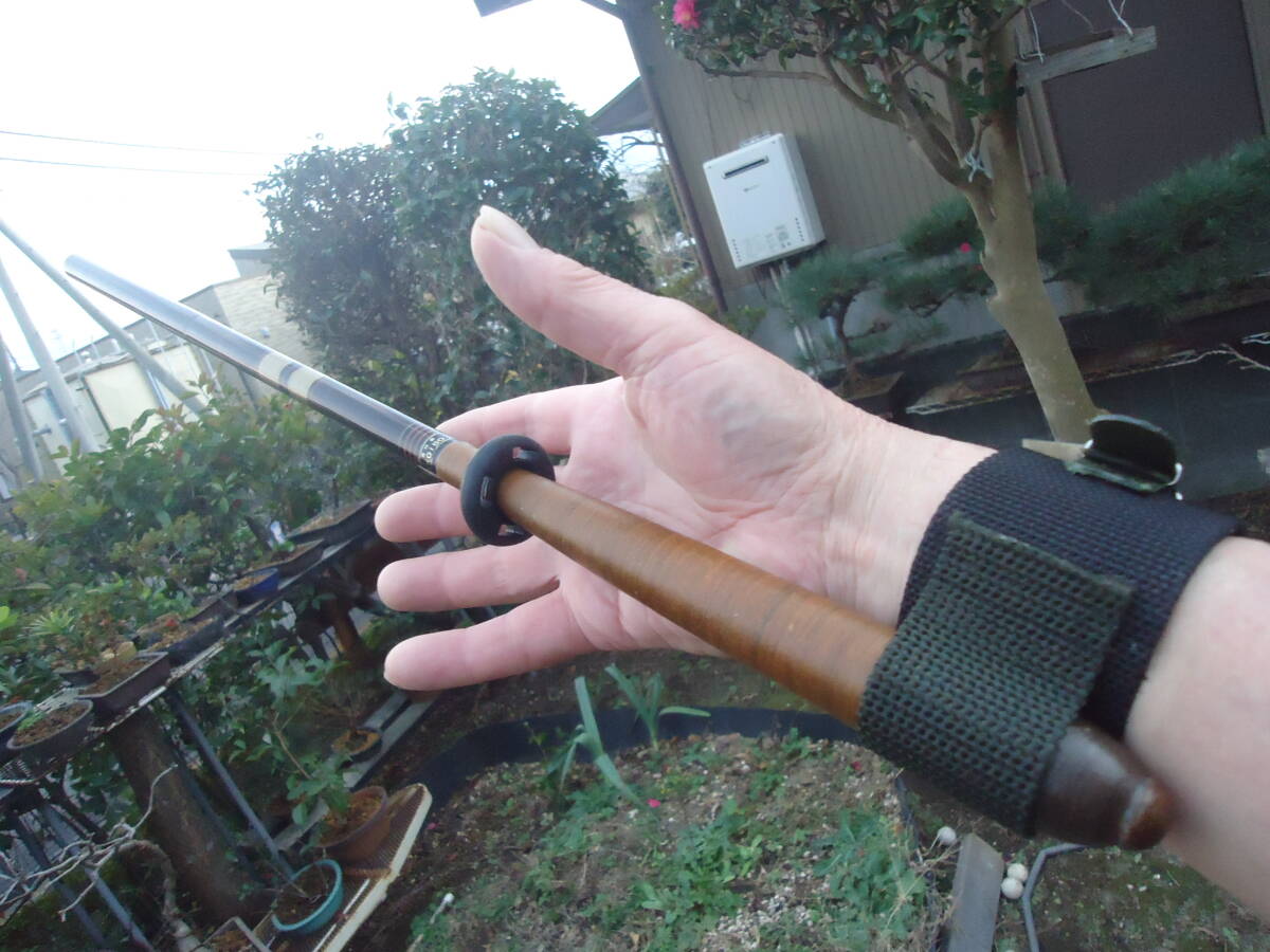 餌の降り落とし、当たりの合わせ、などはいつもの手首の返し、合わせも、いつもの合わせで魚がヒットしたならば素早く竿尻をアシストバンドの輪の中にとうし腕と竿を一体にします後はいつもの用に玉網に取り込んでおしまい。