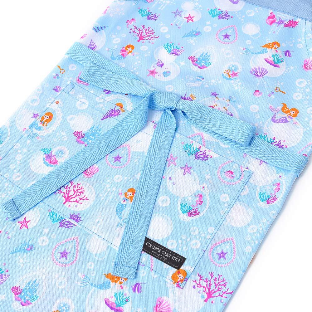 子供用 キッズエプロン 女の子 三角巾 セット 小学生 着脱簡単 100-120 マーメイドと輝く光のフィルハーモニー カラフルキャンディスタイ