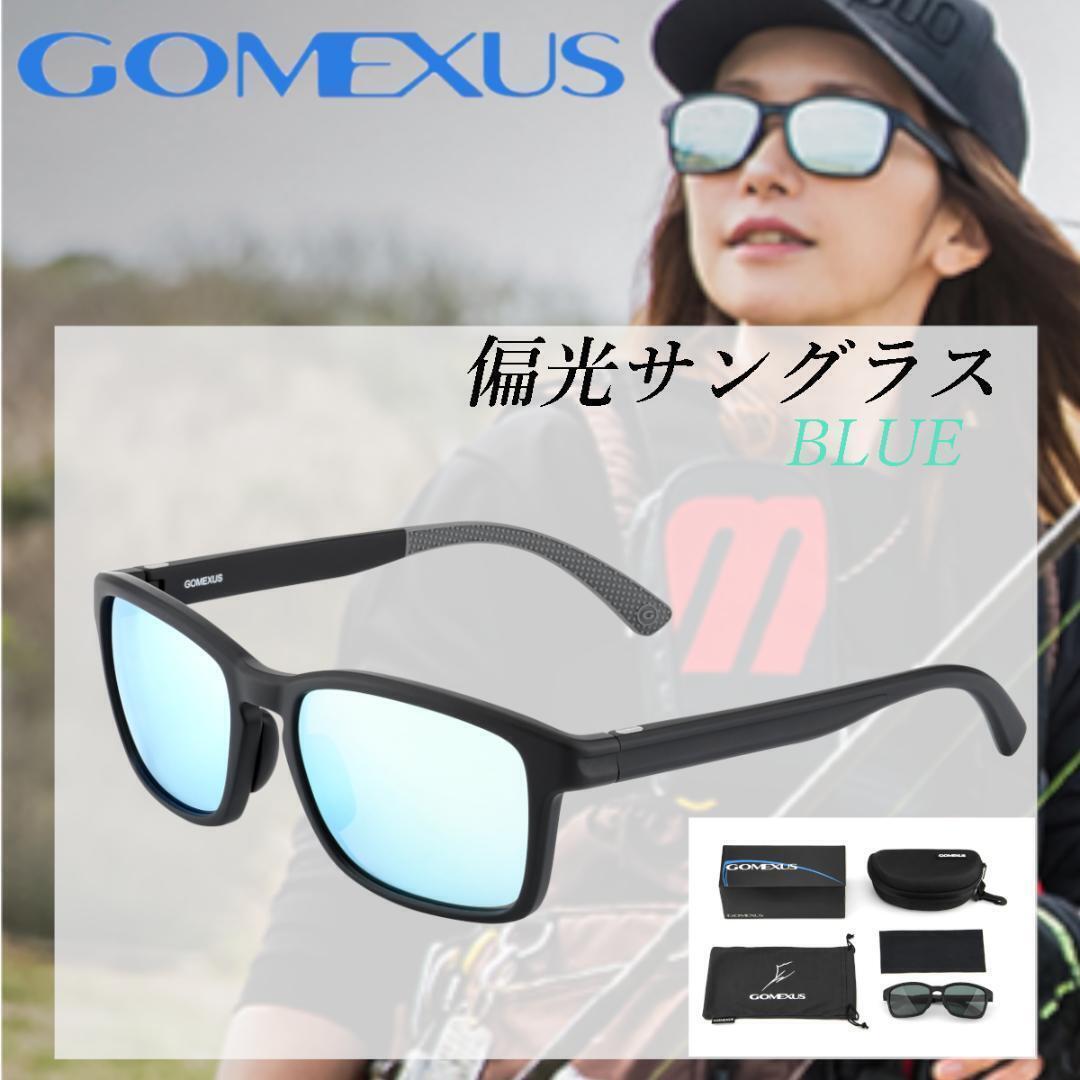 GOMEXUS ゴメクサス 偏光サングラス CR-39光学レンズ ウェリントン型 ブルーミラー