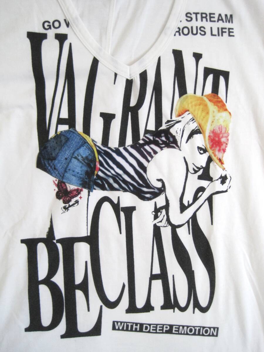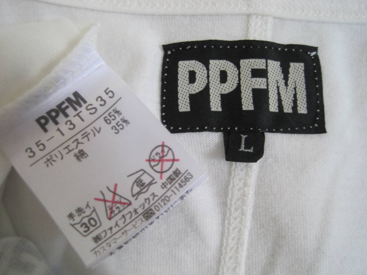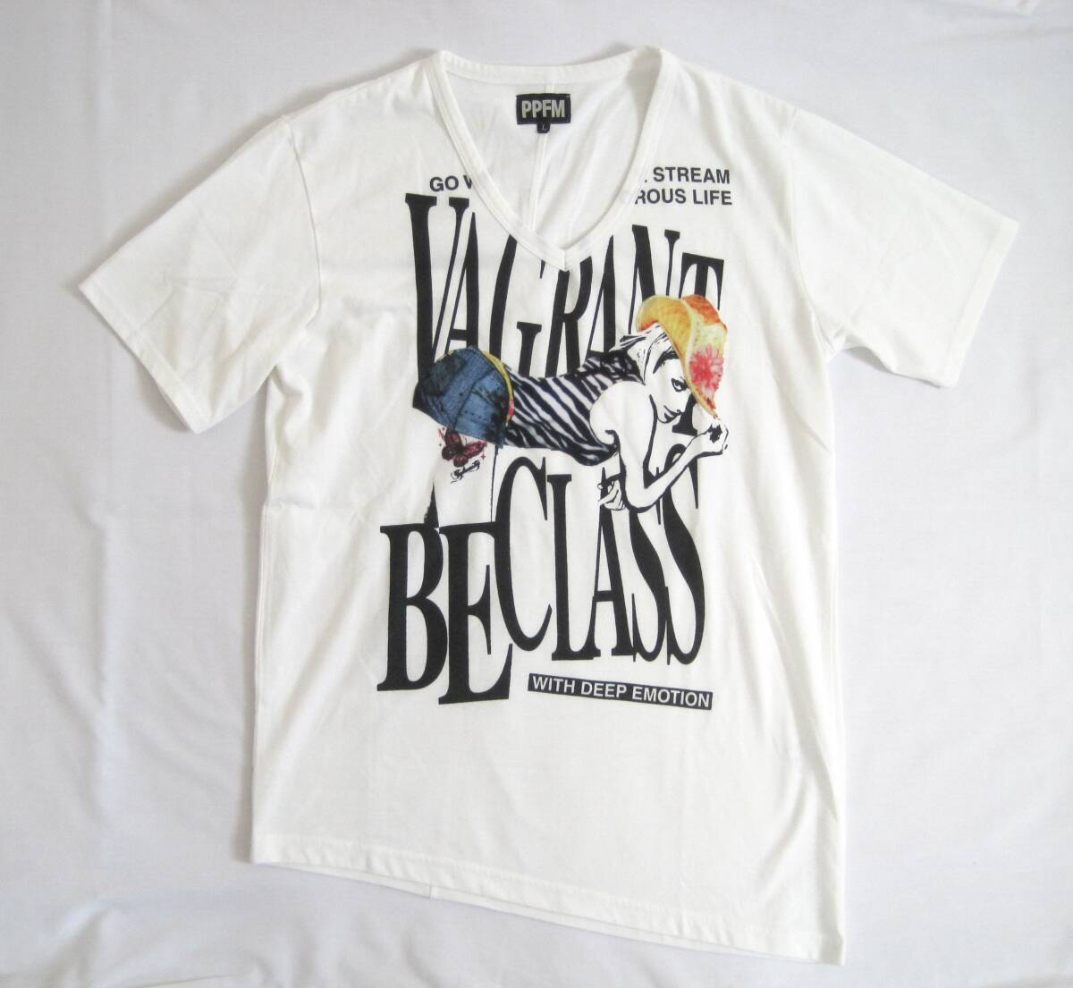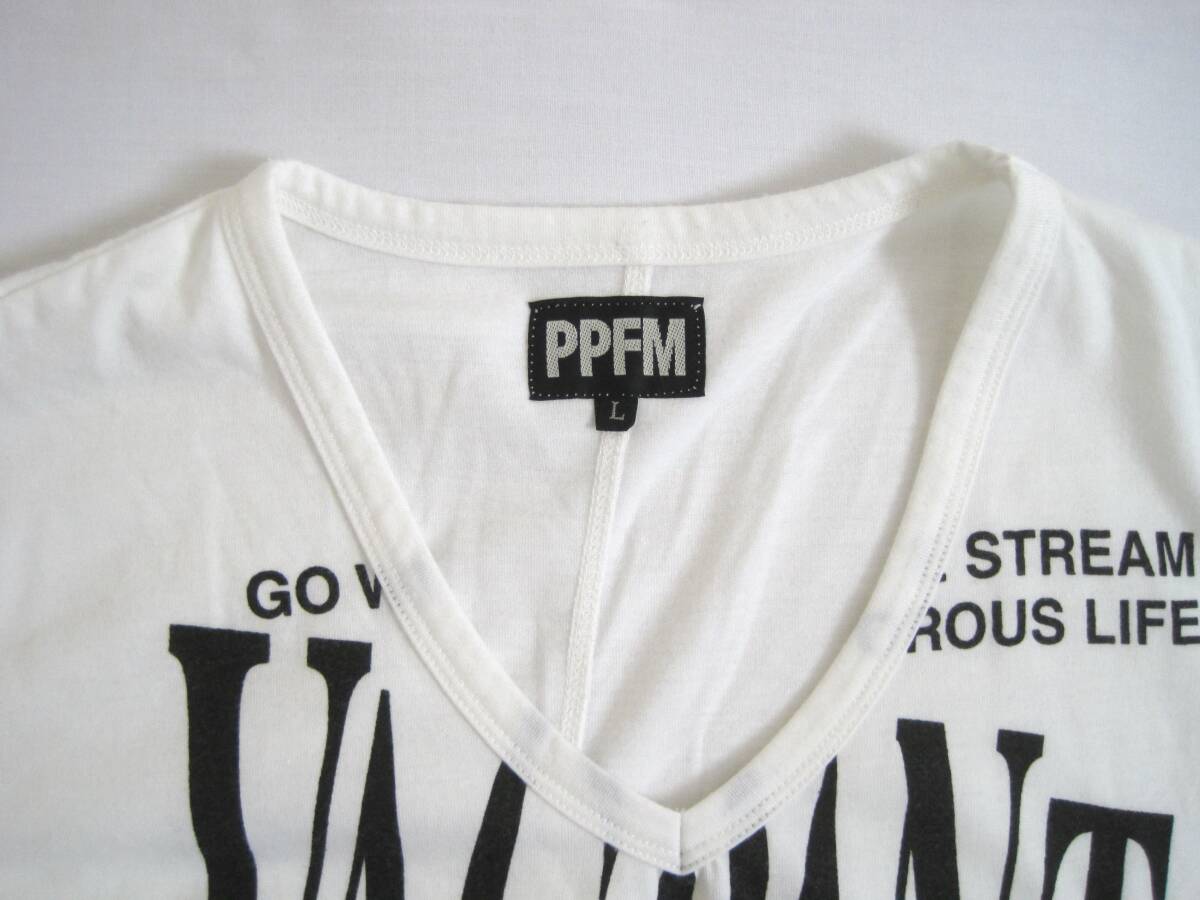 PPFMのVネック 裾斜め プリントTシャツ。Lサイズ。