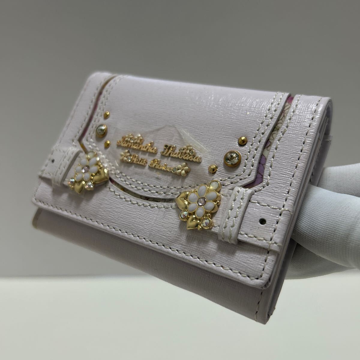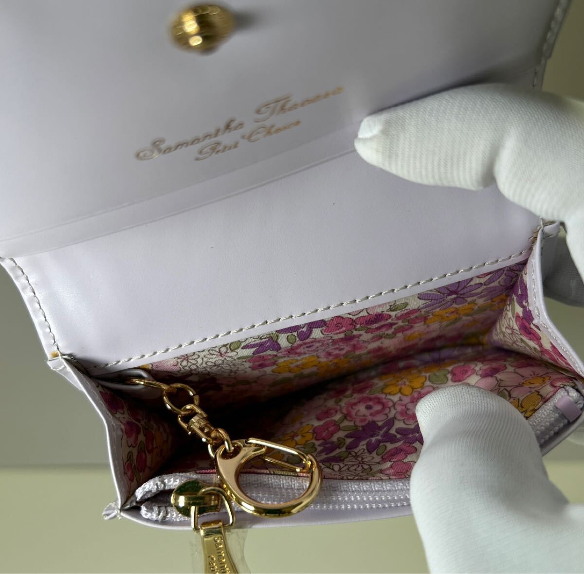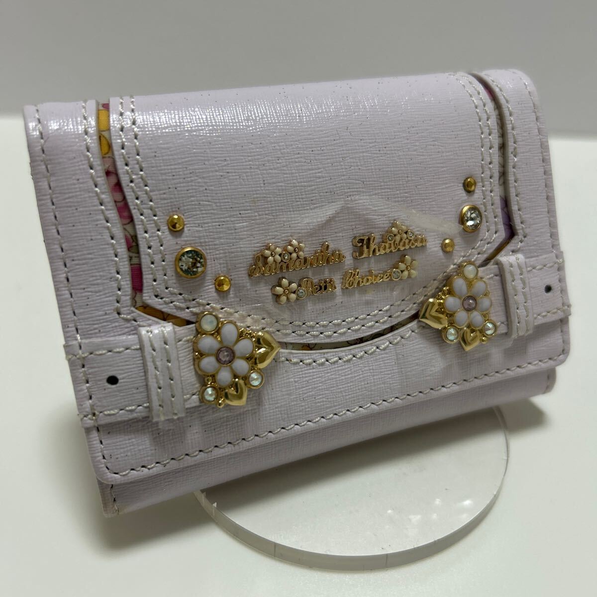 ☆未使用-美品☆ ★サマンサタバサ 花柄 マルチパスケース ラベンダー★ ビジュー ミニ財布 コインケース 名刺入れ【送料無料】0722