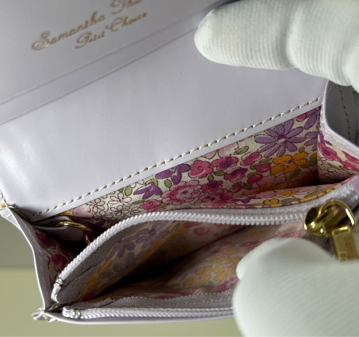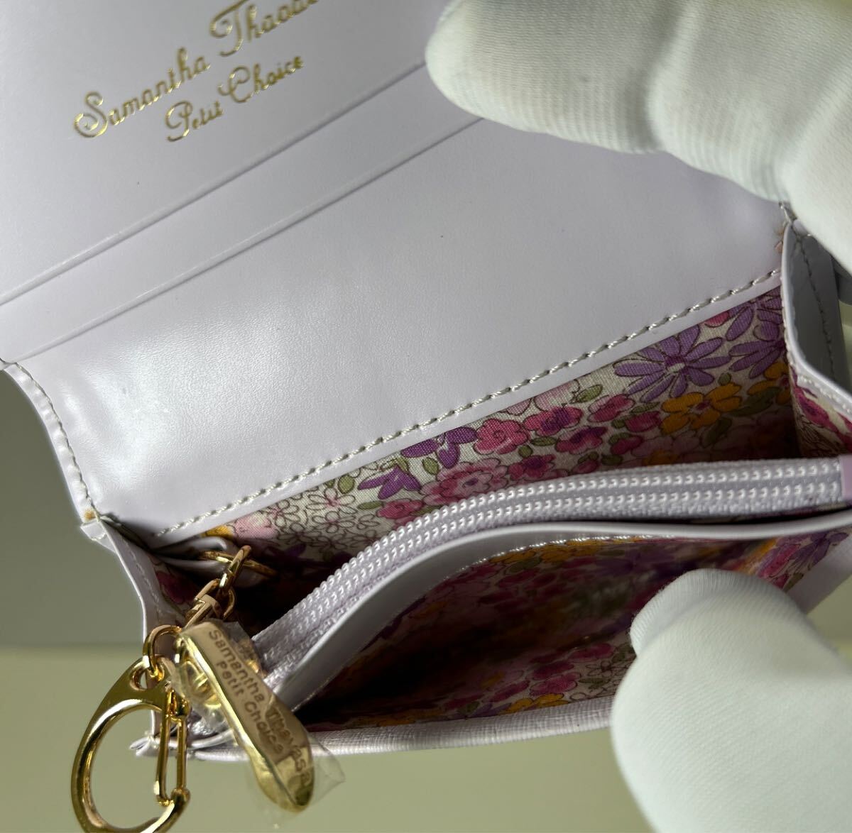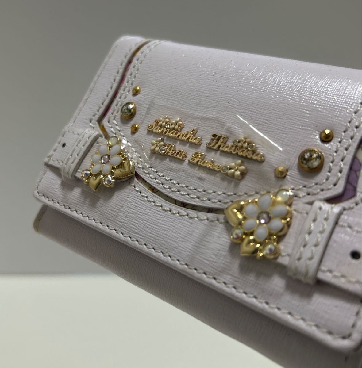 ☆未使用-美品☆ ★サマンサタバサ 花柄 マルチパスケース ラベンダー★ ビジュー ミニ財布 コインケース 名刺入れ【送料無料】0722