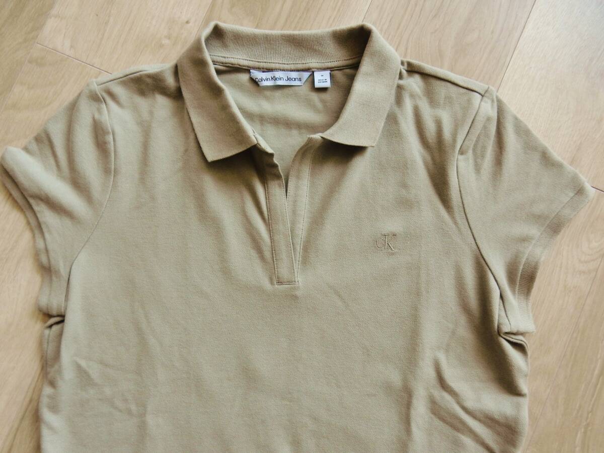 抹茶ベージュのCalvin Klein Jeansポロシャツ、五分袖デザインでカジュアルなスタイルに最適。