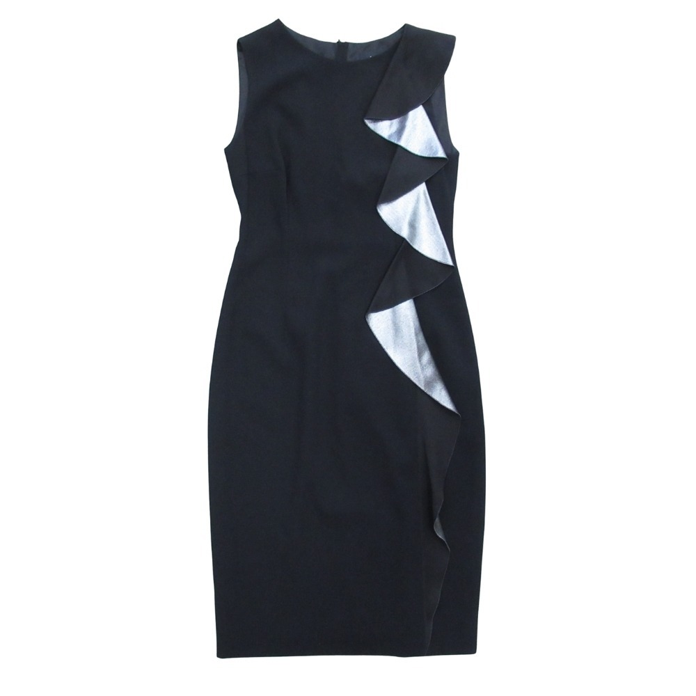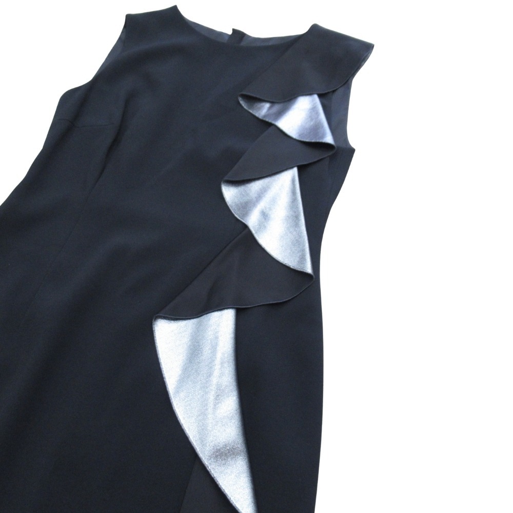 商品名:20ss PAULE KA ポールカ ラッフル フリル ワンピース ノースリーブ タイトシルエット ドレス 38 黒 ブラック