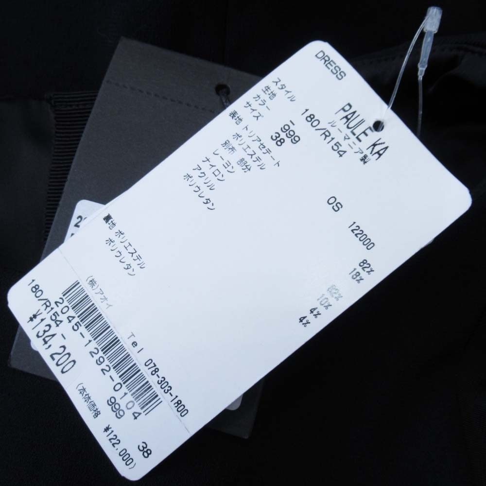 未使用 20ss PAULE KA ポールカ ラッフル フリル ワンピース ノースリーブ タイトシルエット ドレス 38 黒 ブラック