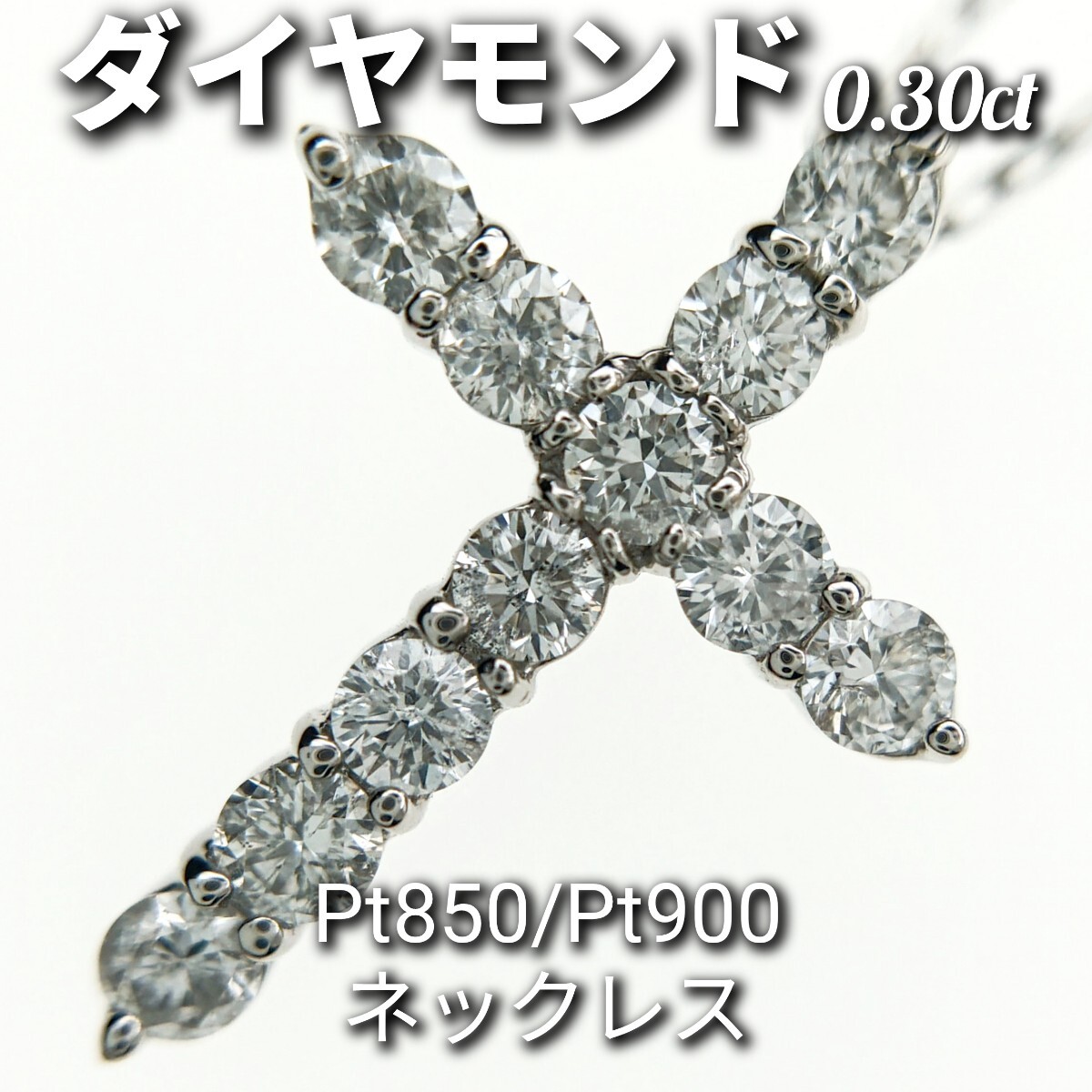 ダイヤモンド 0.30ct Pt850/Pt900 ネックレス  クロス 十字架 ☆新品同様磨き☆