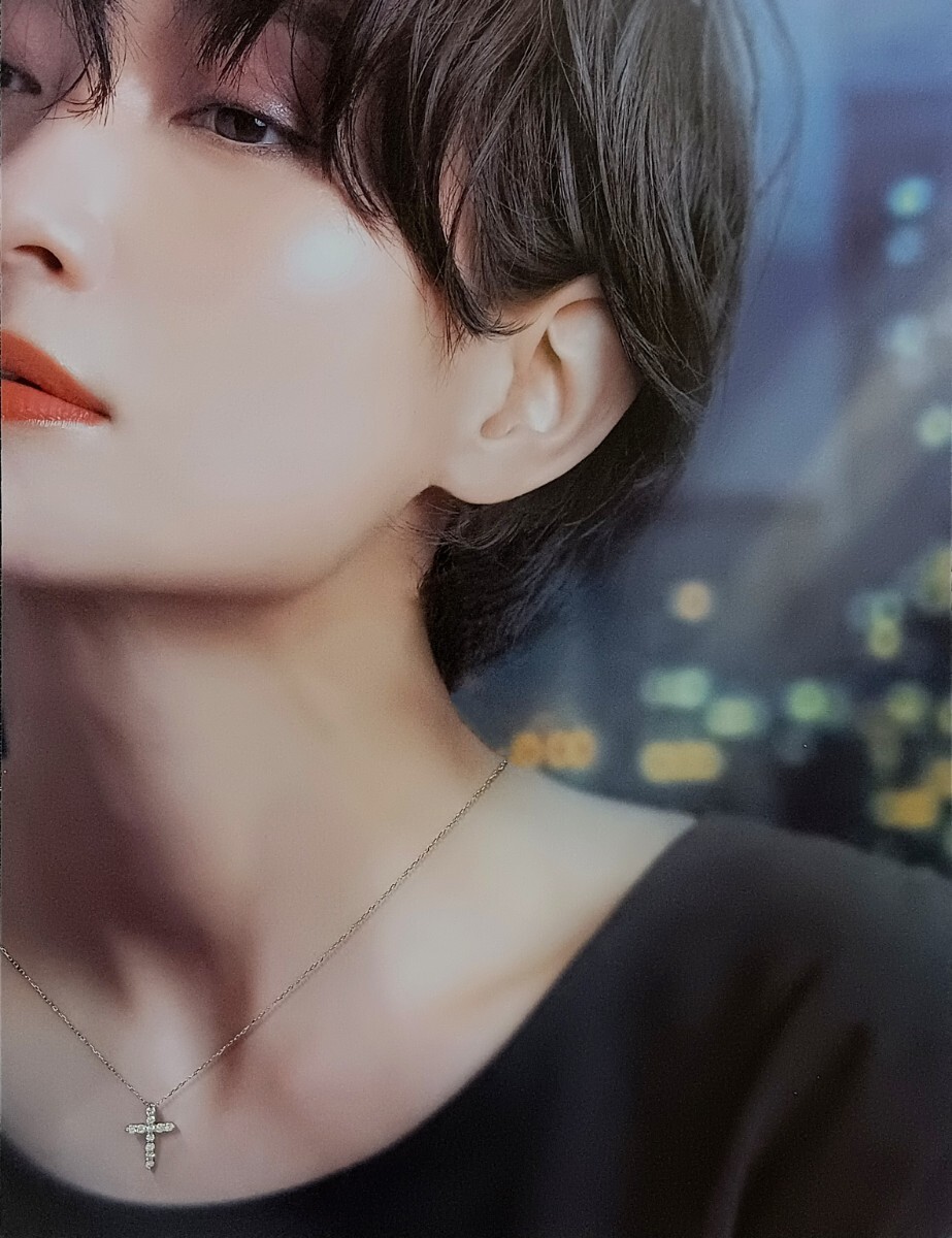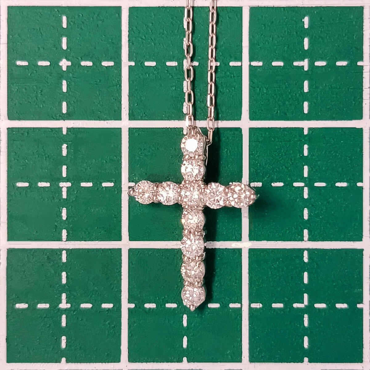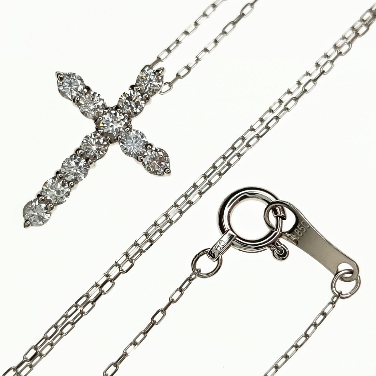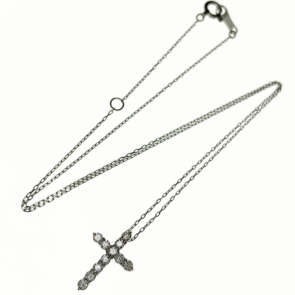 無色透明の煌めくダイヤモンドが並んだクロスモチーフのネックレスです。