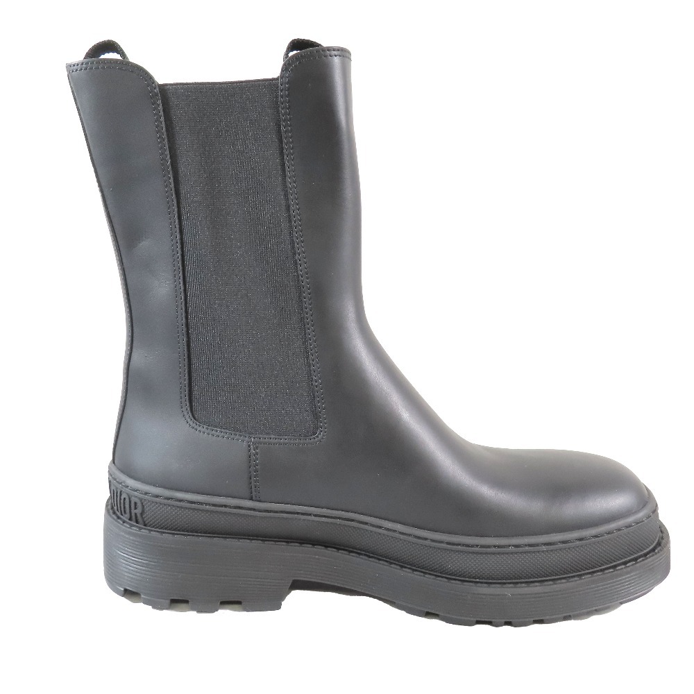 未使用 Christian Dior クリスチャンディオール TRIAL サイドゴア チェルシーブーツ カーフスキン ロゴ 靴 シューズ 黒 41/28cm