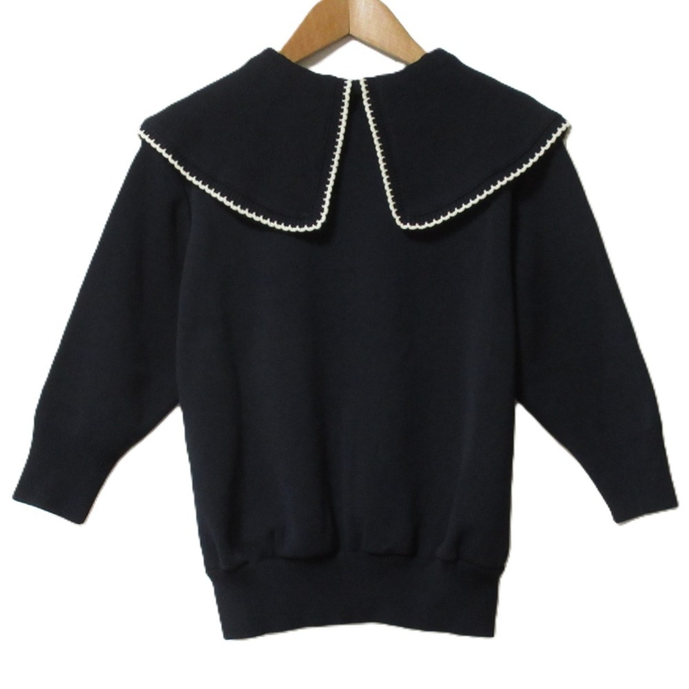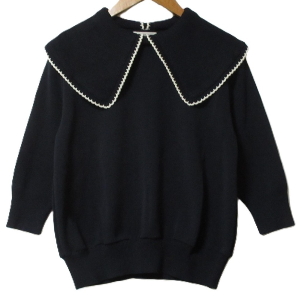 商品名:24SS yori ヨリ 七分袖 コットン刺繍カラーニット セーター YR31-24040SP サイズF ネイビー