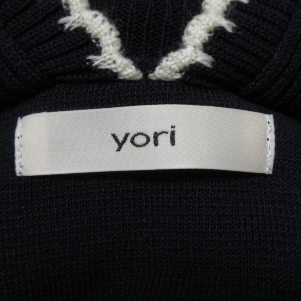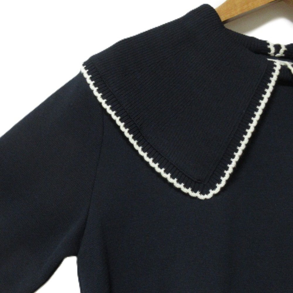 美品 24SS yori ヨリ 七分袖 コットン刺繍カラーニット セーター YR31-24040SP サイズF ネイビー