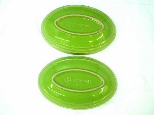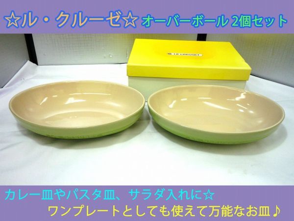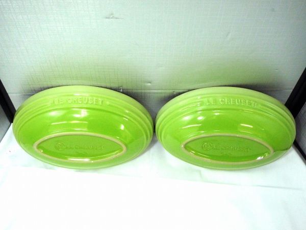 | 20158☆未使用品☆ LE CREUSET ル・クルーゼ オーバル ボール 2個SET フルーツグリーン 23cm 楕円 カレー皿 パスタ皿 サラダ皿 箱に傷み有 | ||