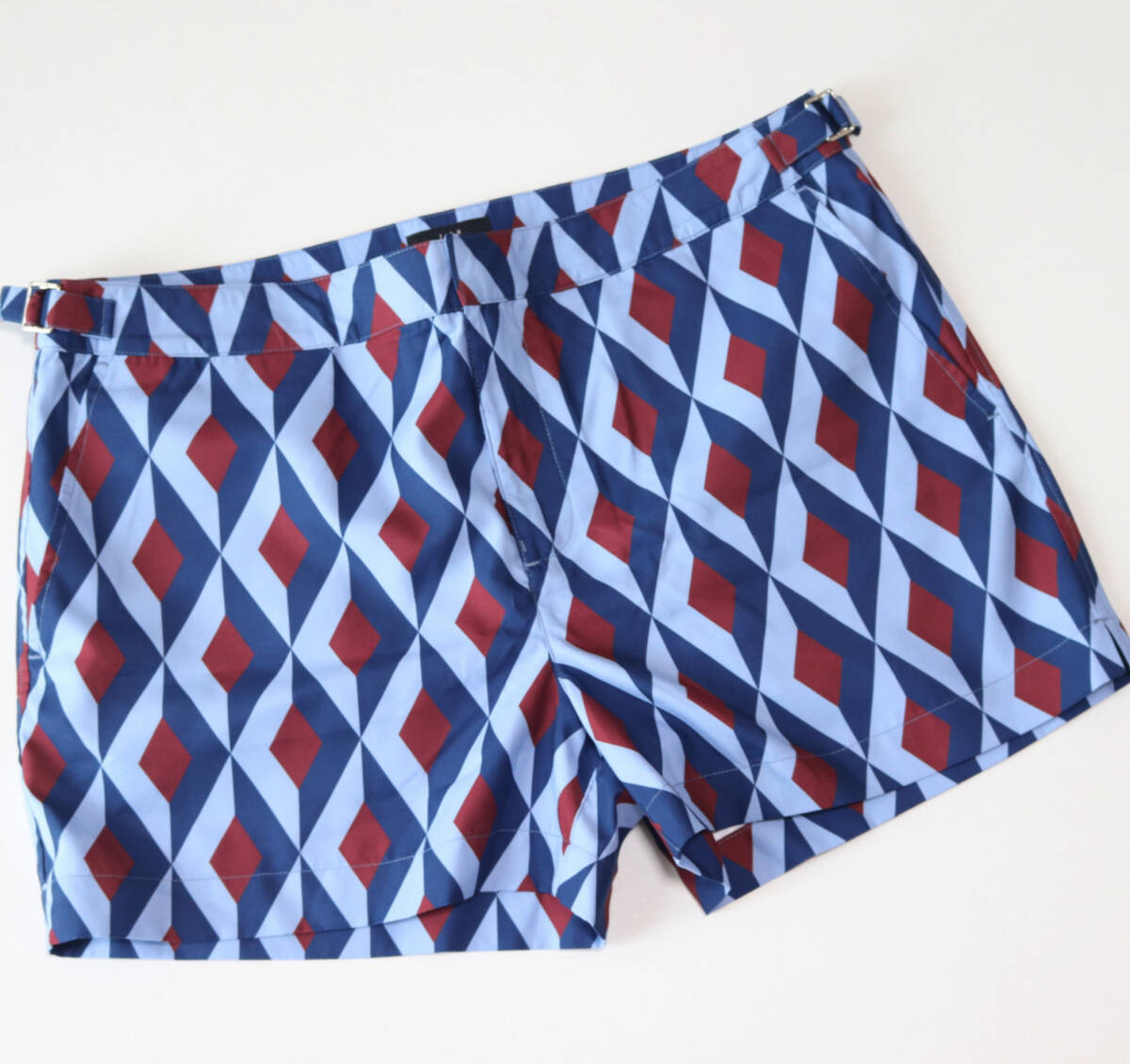 42,900円新品タグ付き【dunhill LONDON ダンヒル】幾何学柄 インナーメッシュ付き スイムウェア 海パン 水着 L v7363 |