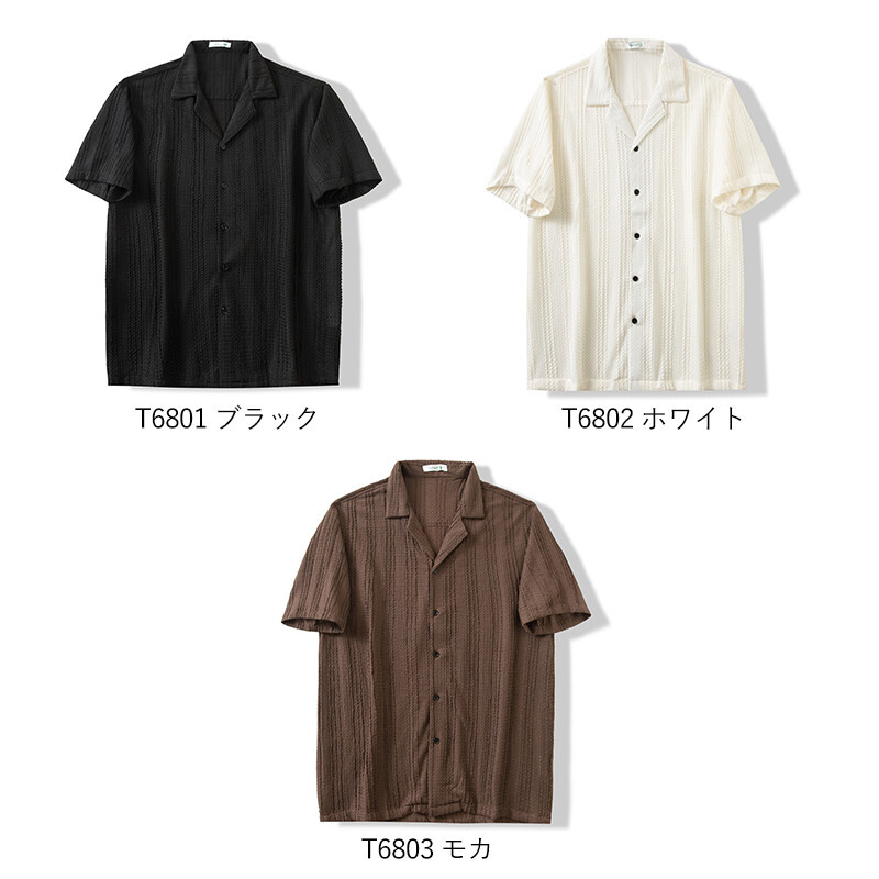 T6802-L 新品 ジャカード 透かし メッシュ 半袖 サマー シャツ 開襟 オープンカラー 涼感 柔らかい 盛夏 春夏 アロハシャツ ホワイト