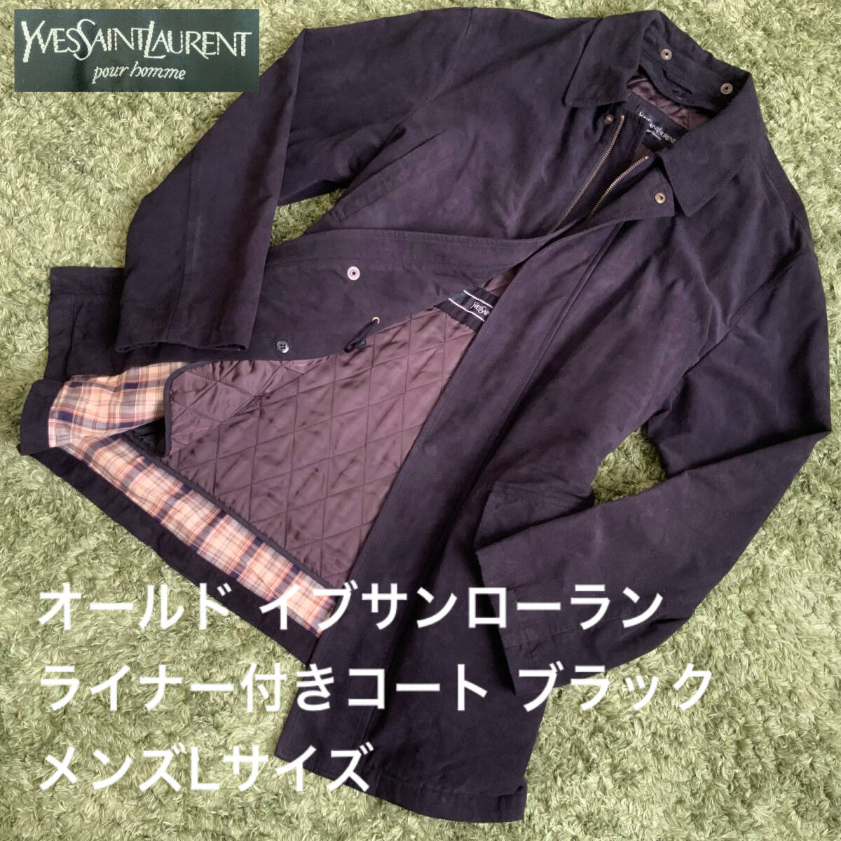 希少 イヴ・サンローラン Yves Saint Laurent ライナー付きコート ロングコート 人工スエードレザーコート メンズLサイズ ブラック