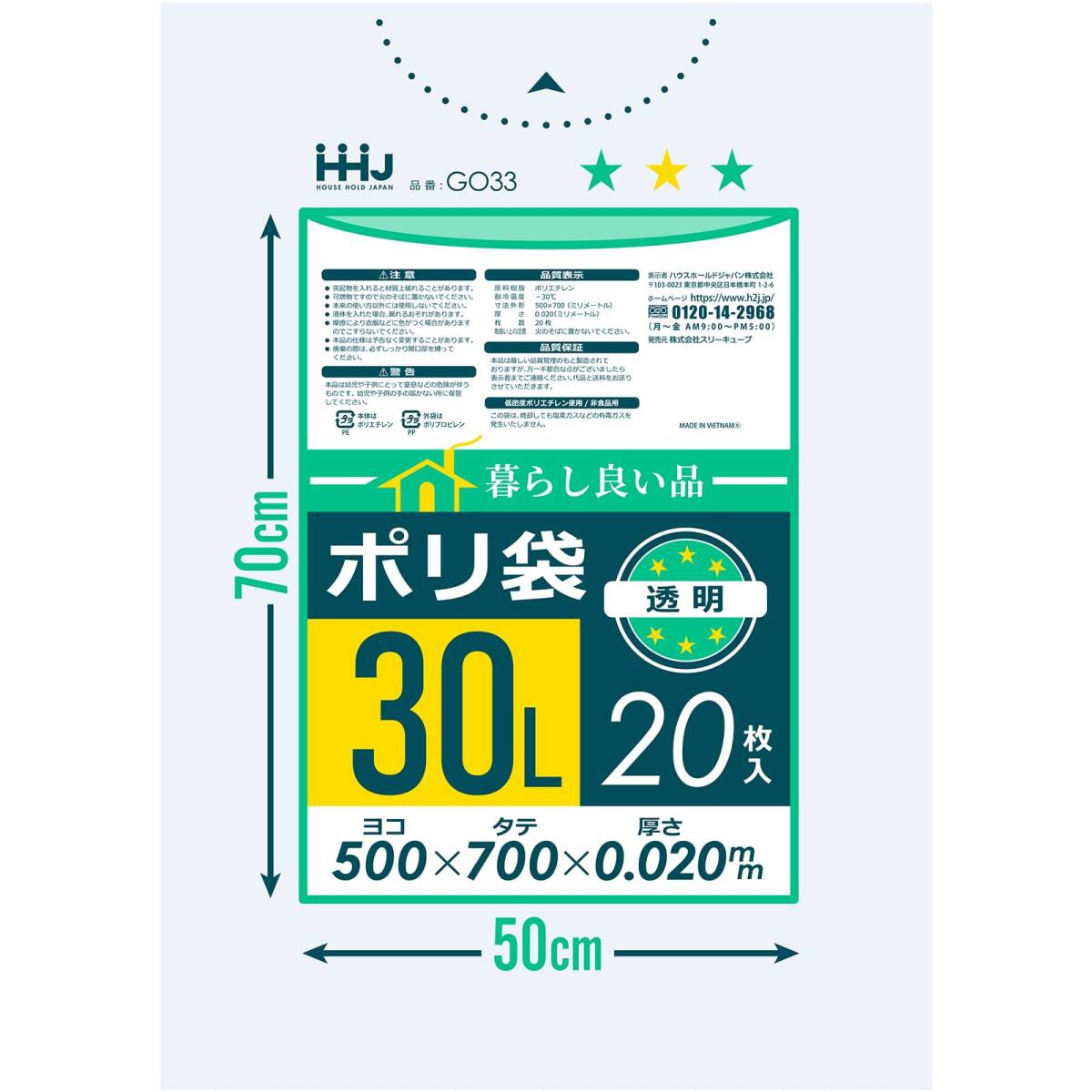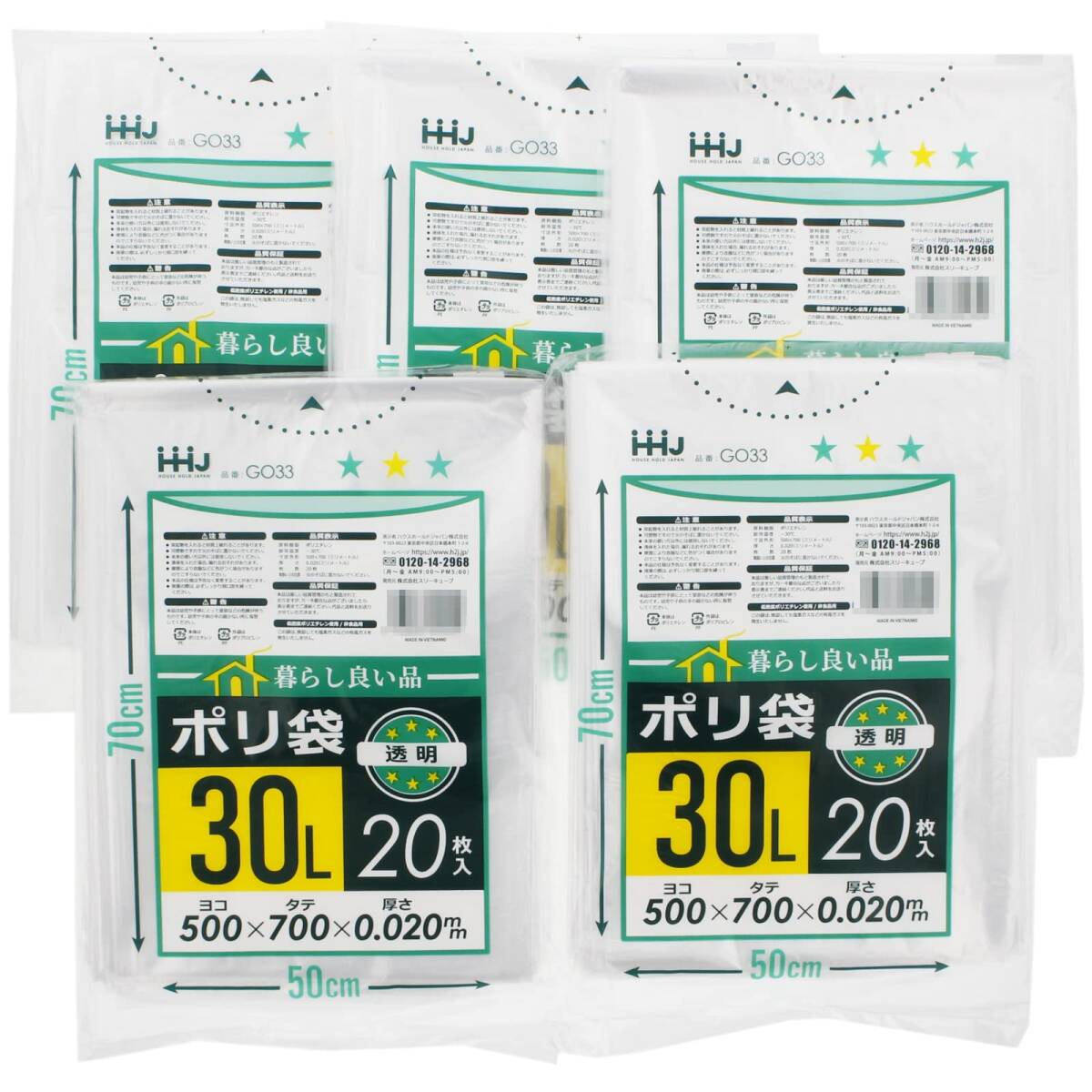 ハウスホールドジャパン ゴミ袋 暮らし良い品 ポリ袋 透明 30L 20枚入×5個セット GO33-5