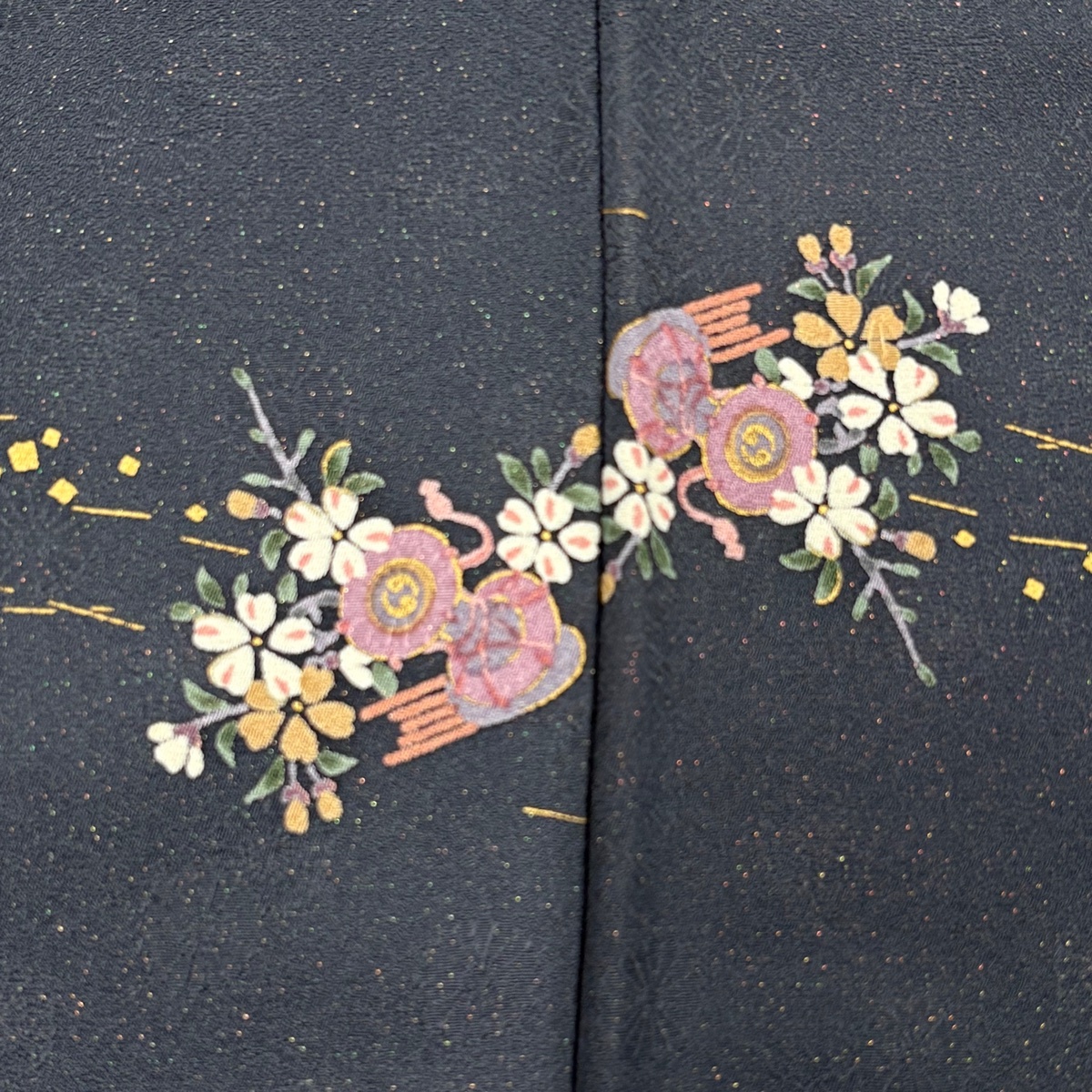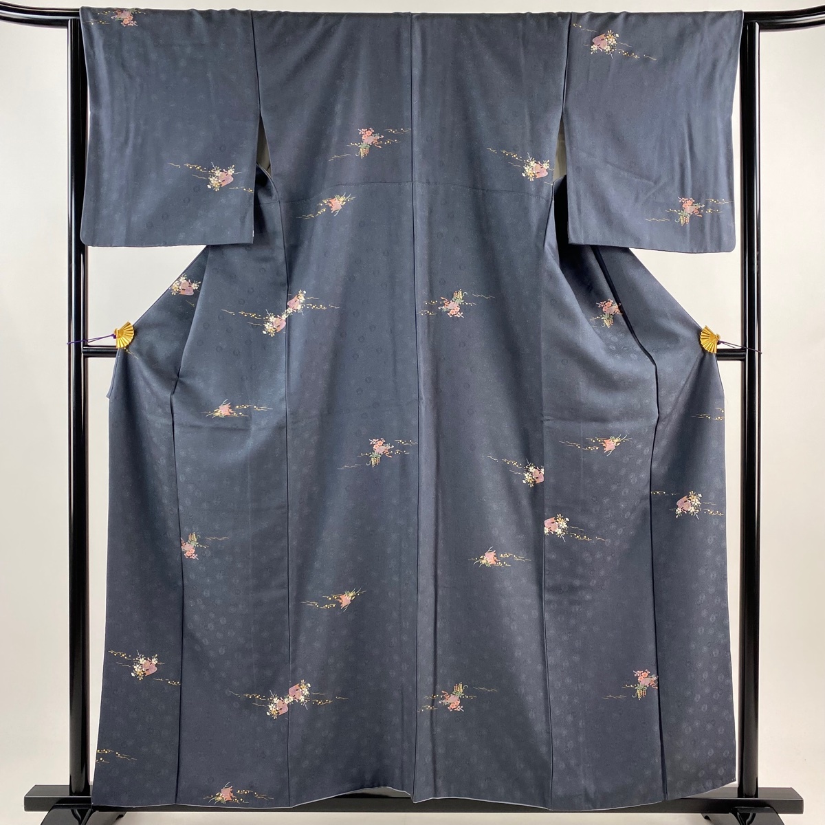 | 小紋 秀品 鼓 草花 金彩 ラメ彩 灰色 袷 身丈158.5 裄丈64.5 M 正絹 【中古】 |