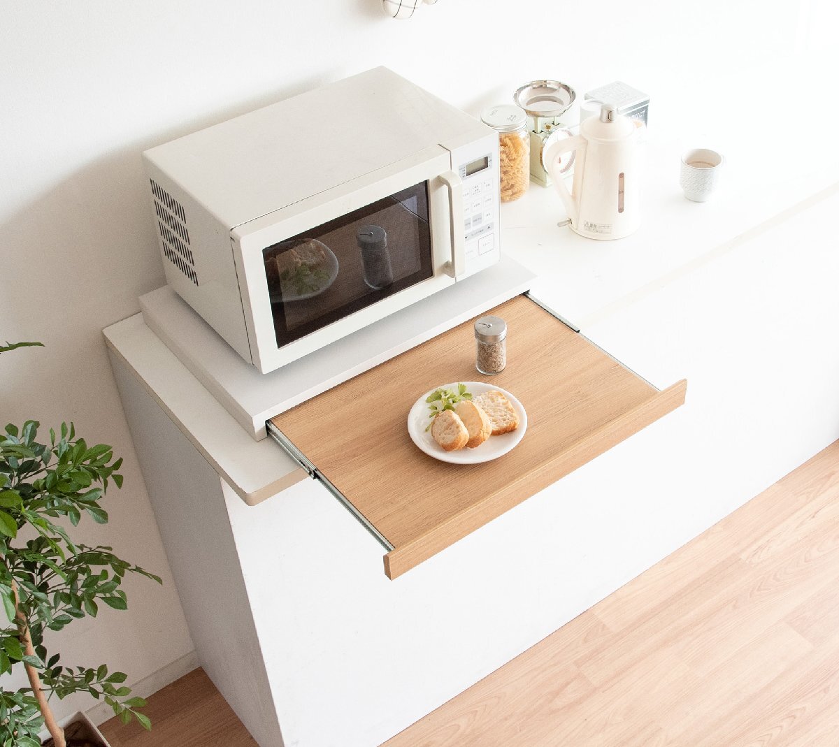 レンジや家電の下に置くだけで作業スペースが作れるレンジ下トレー『Avenir(アベニール)』。